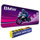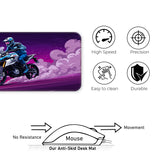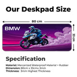 Bring adventure to your workspace with this BMW motorcycle racing deskmat. The purple background and high-speed dust effect highlight BMW’s power and endurance. Designed with stitched edges, anti-slip rubber, and a smooth top, this deskmat is ideal for bikers, gamers, and office use.