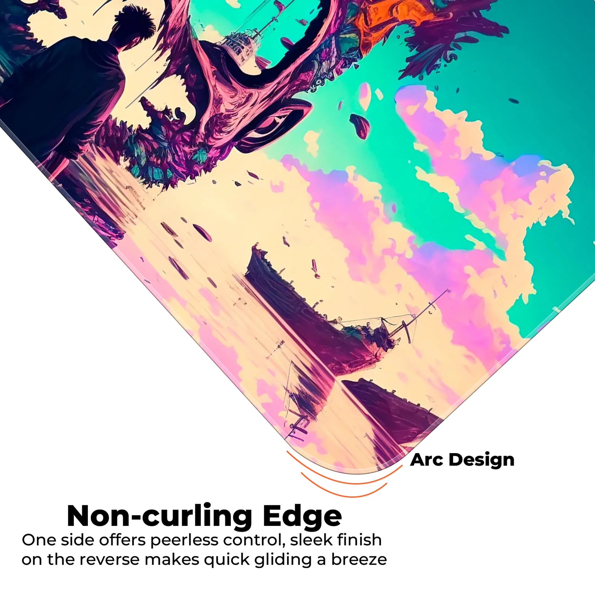 With a glowing cyan-pink vaporwave sky, levitating stones, and a lone figure facing the surreal horizon, this desk mat is made for creators, gamers, and explorers who embrace the chaos and creativity of their inner world.