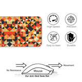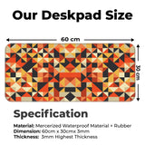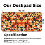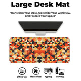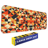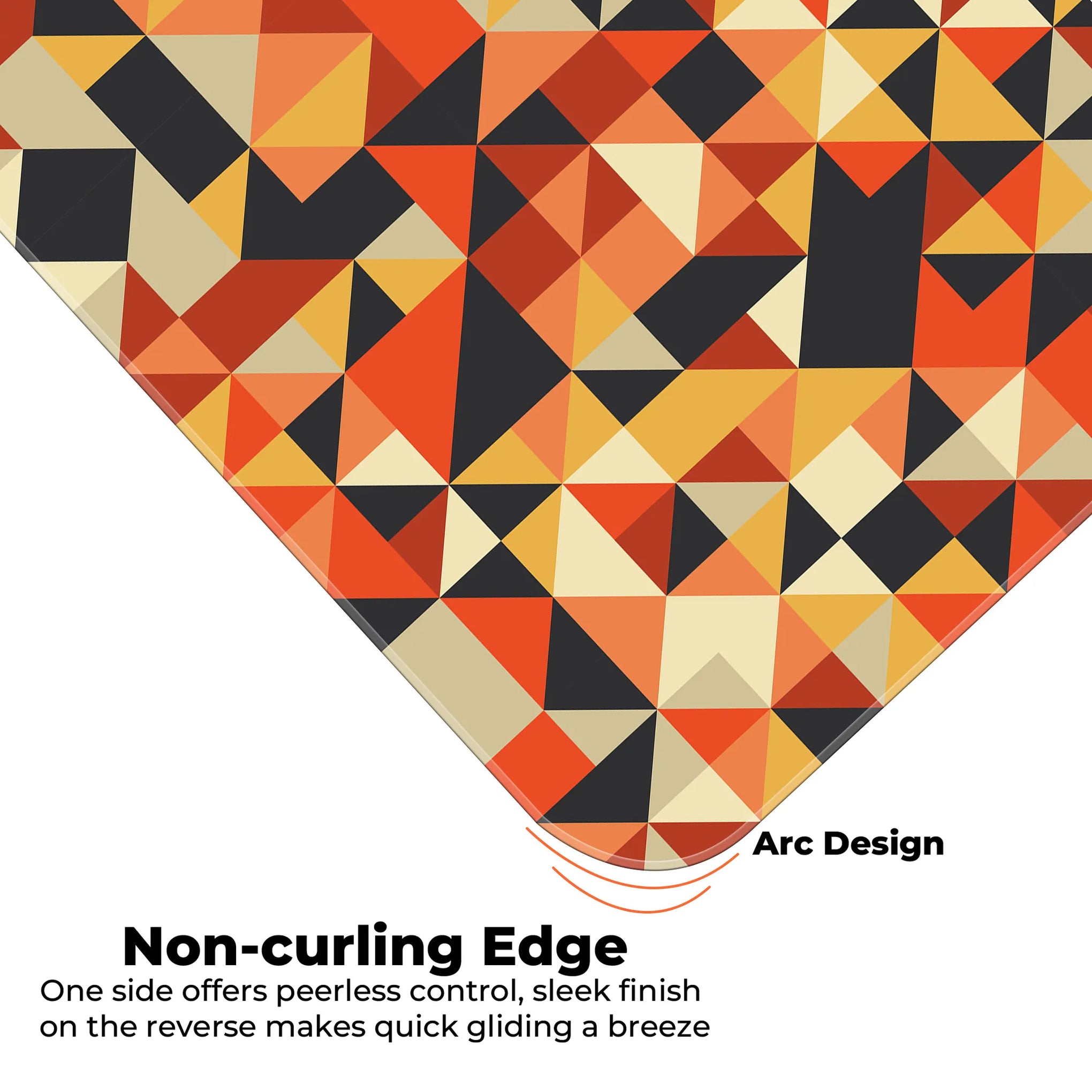 Brighten your desk with this bold geometric deskmat featuring sharp triangular patterns in warm red, orange, and beige tones. Its abstract symmetry creates a visually striking look that pairs well with both gaming and office setups. Built for durability and style, this deskmat offers precision, grip, and a modern edge to your workspace.