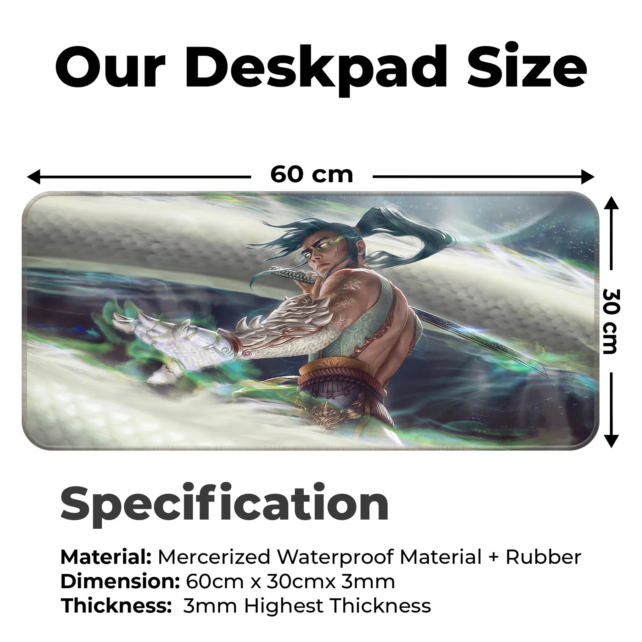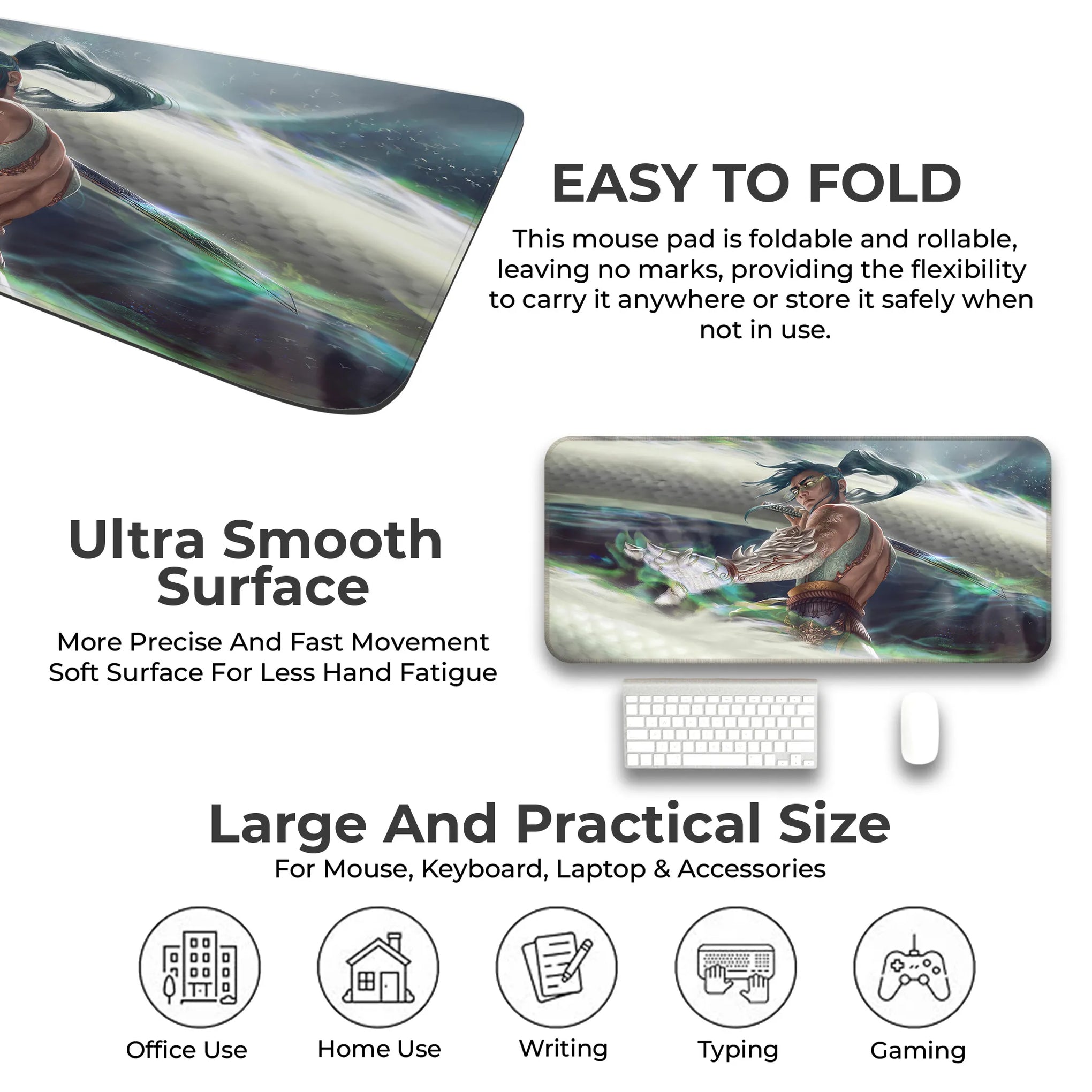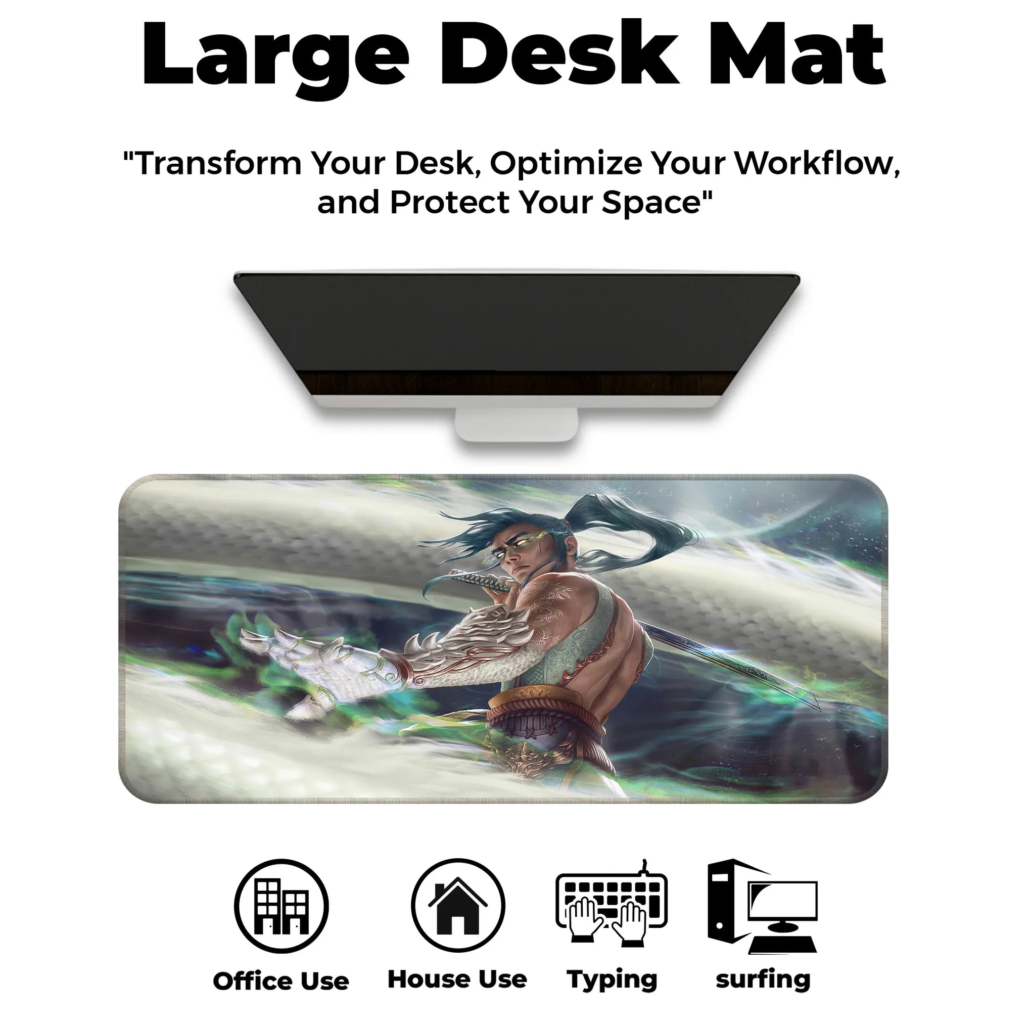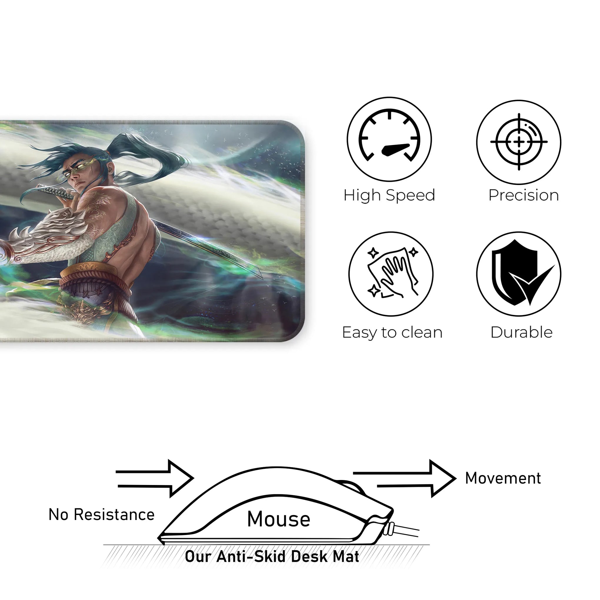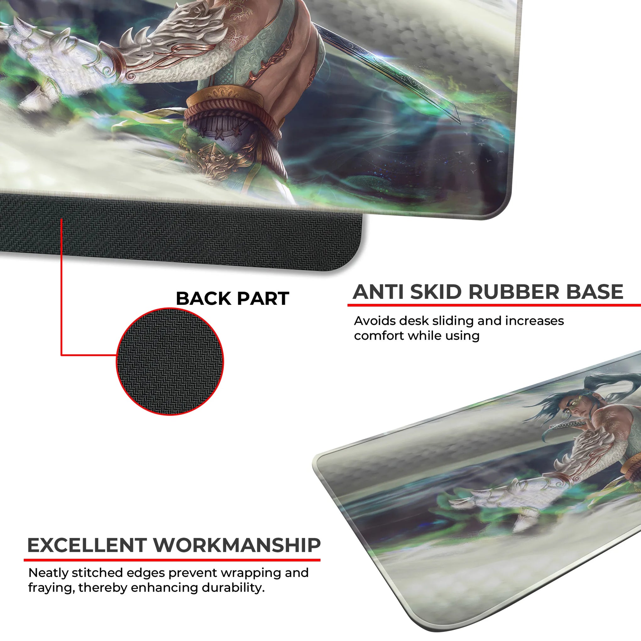 Bring fantasy battles to your desk with this powerful Samurai warrior art deskmat. Highlighting intricate armor, flowing hair, and a mystical dragon aura, this artwork blends action and elegance. Built for gamers and anime lovers, the smooth fabric surface ensures precision while the anti-slip base keeps the deskmat in place. Perfect for collectors of Japanese and fantasy-inspired art.