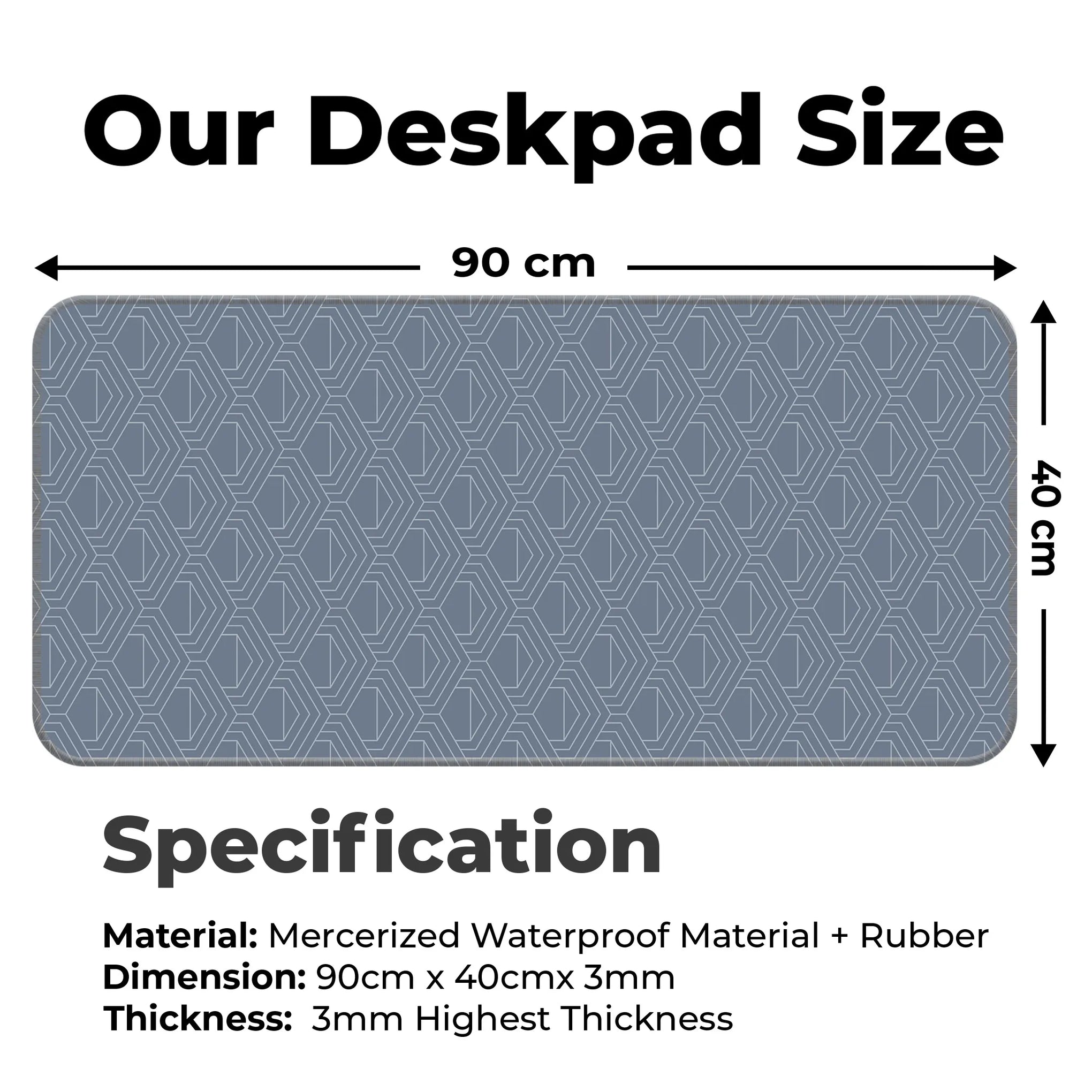 Modern and stylish, this blue geometric hexagon patterned deskmat is the perfect blend of art and utility. The sharp linework creates a futuristic vibe, making it ideal for tech enthusiasts, designers, and gamers who want their desk to stand out. The large format ensures ample space for your mouse and keyboard, while the smooth surface enhances precision in every movement. With anti-slip backing and stitched edges, this deskmat combines durability with a bold visual statement.