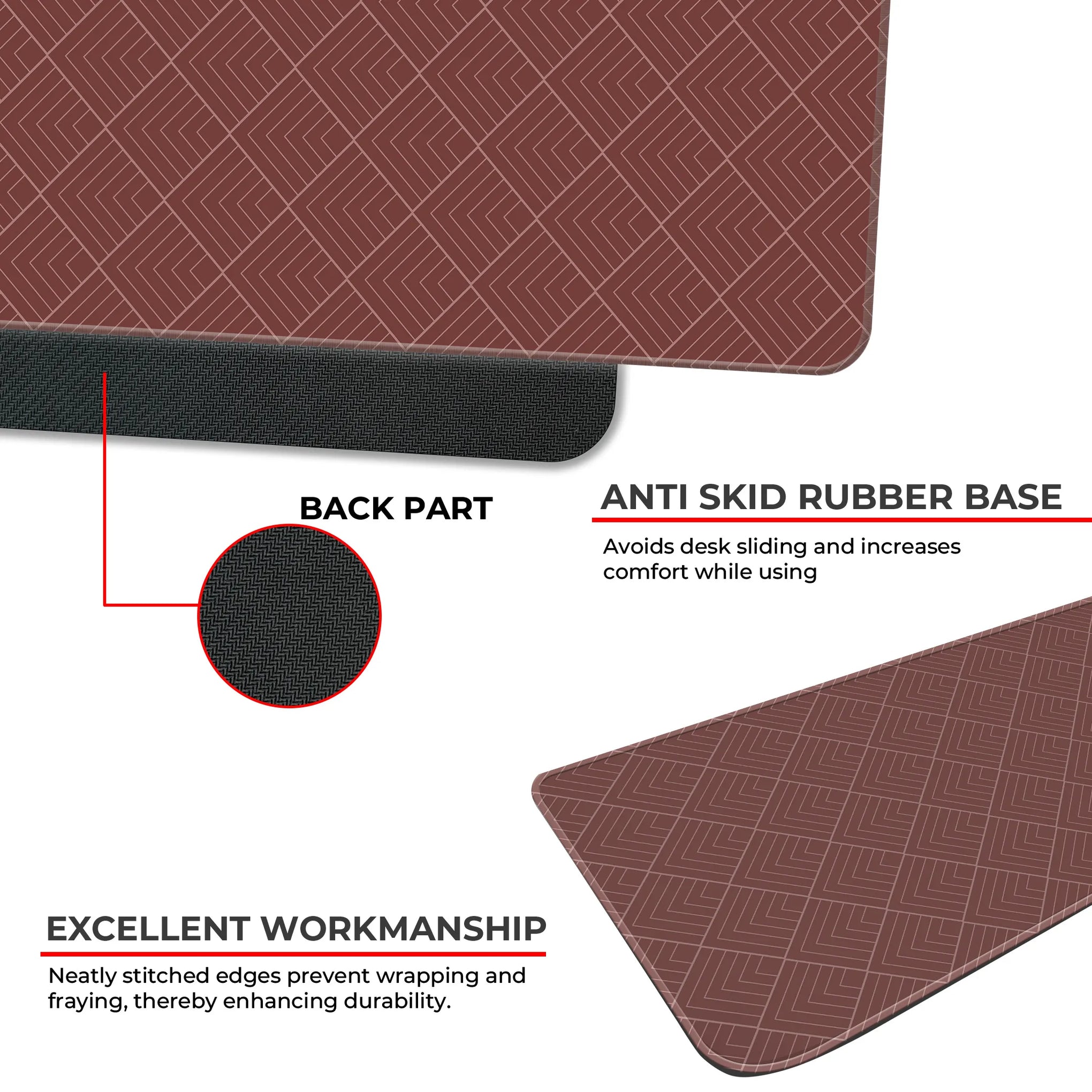 Make a bold statement with this maroon geometric diamond line deskmat. Its strong contrasting design adds depth and elegance to your setup while enhancing your workspace aesthetics. The smooth cloth surface provides exceptional tracking accuracy, while the anti-slip rubber base ensures stability during work or gaming sessions. With stitched edges for durability and a large coverage area, this deskmat is both functional and stylish. Perfect for anyone who loves strong, minimalist designs with a modern edge.