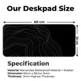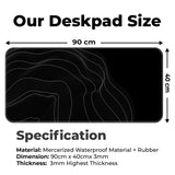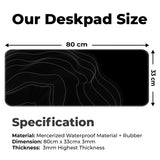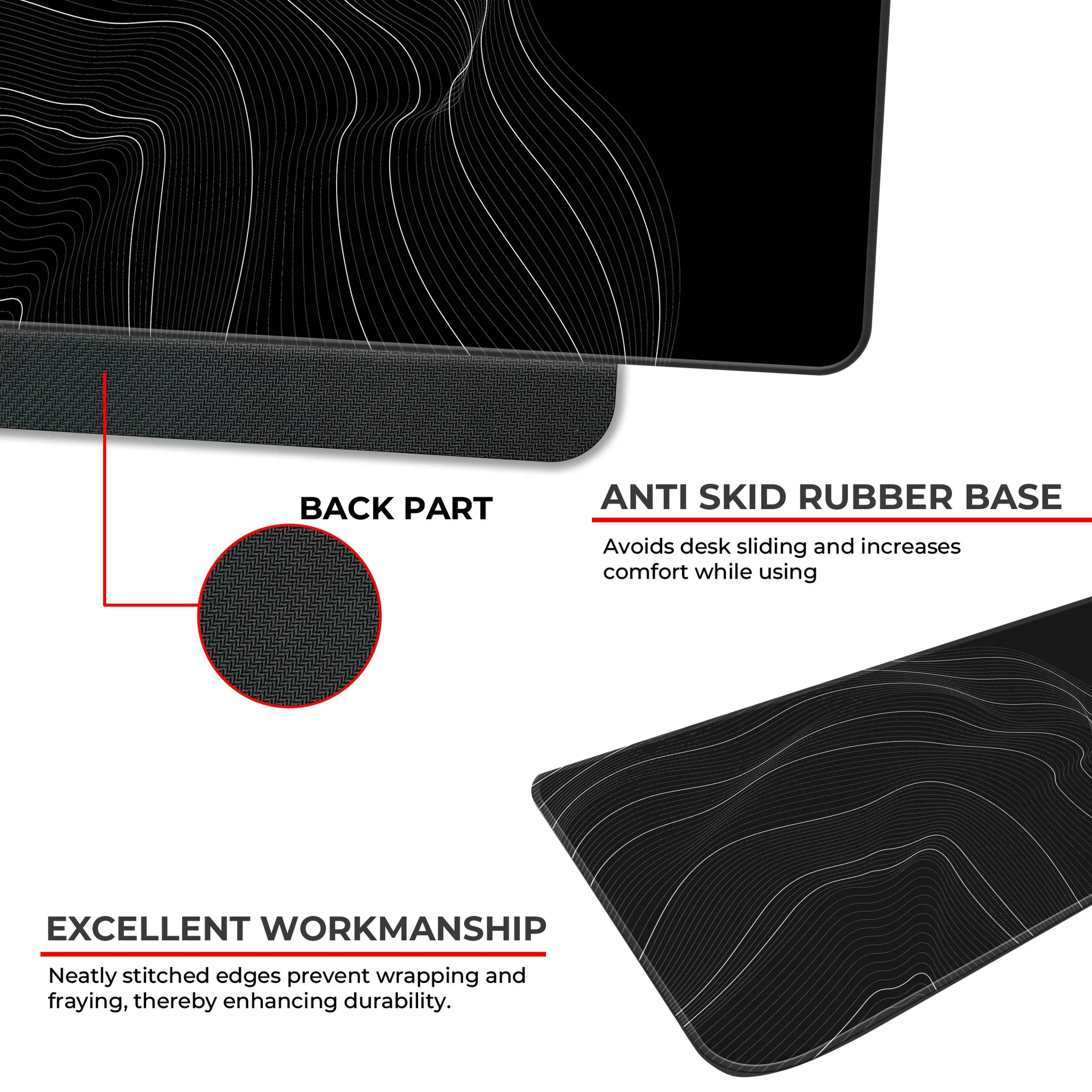 Bring elegance to your setup with this minimalist black deskmat featuring fluid white contour lines that create a modern, sophisticated look. Perfect for professionals, artists, and gamers who love a clean workspace aesthetic. Its extra-wide size provides smooth mouse tracking and ample coverage for keyboard and accessories, while the anti-slip base ensures stability during long hours of use. The sleek design complements any office, studio, or gaming station. Durable stitched edges prevent fraying, making this deskmat both stylish and long-lasting.