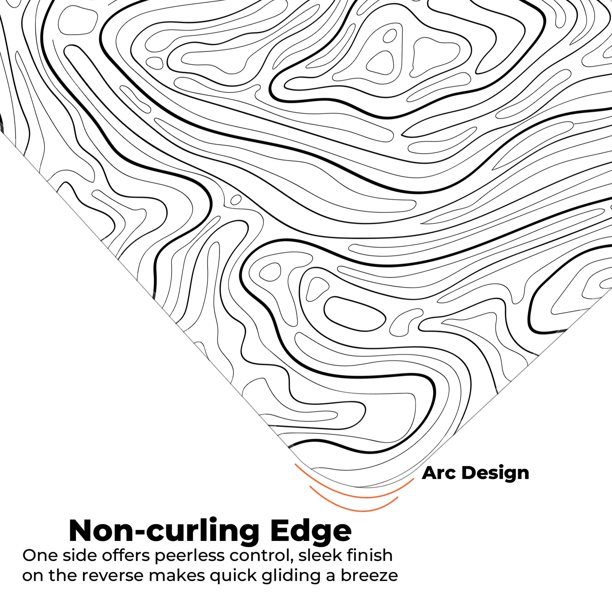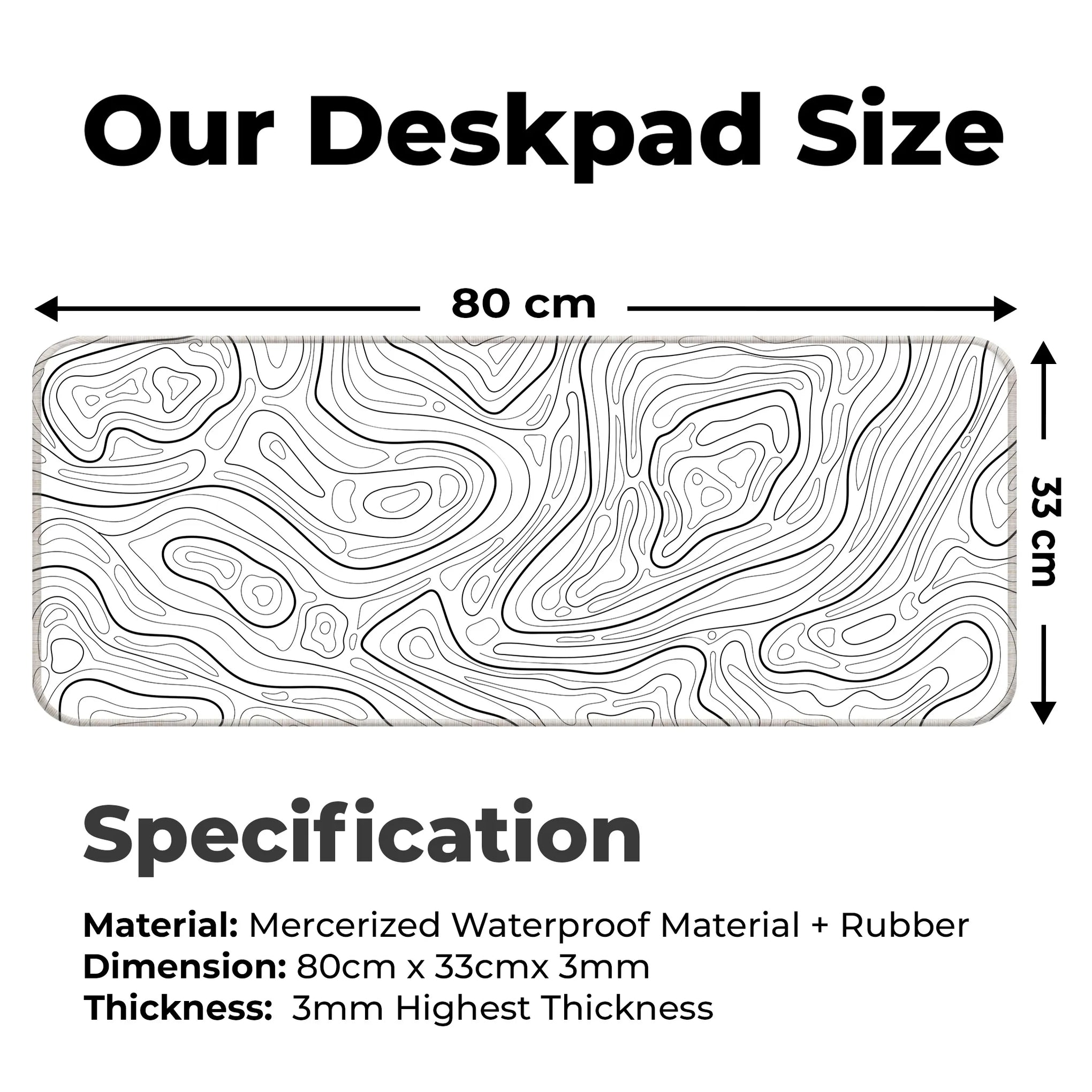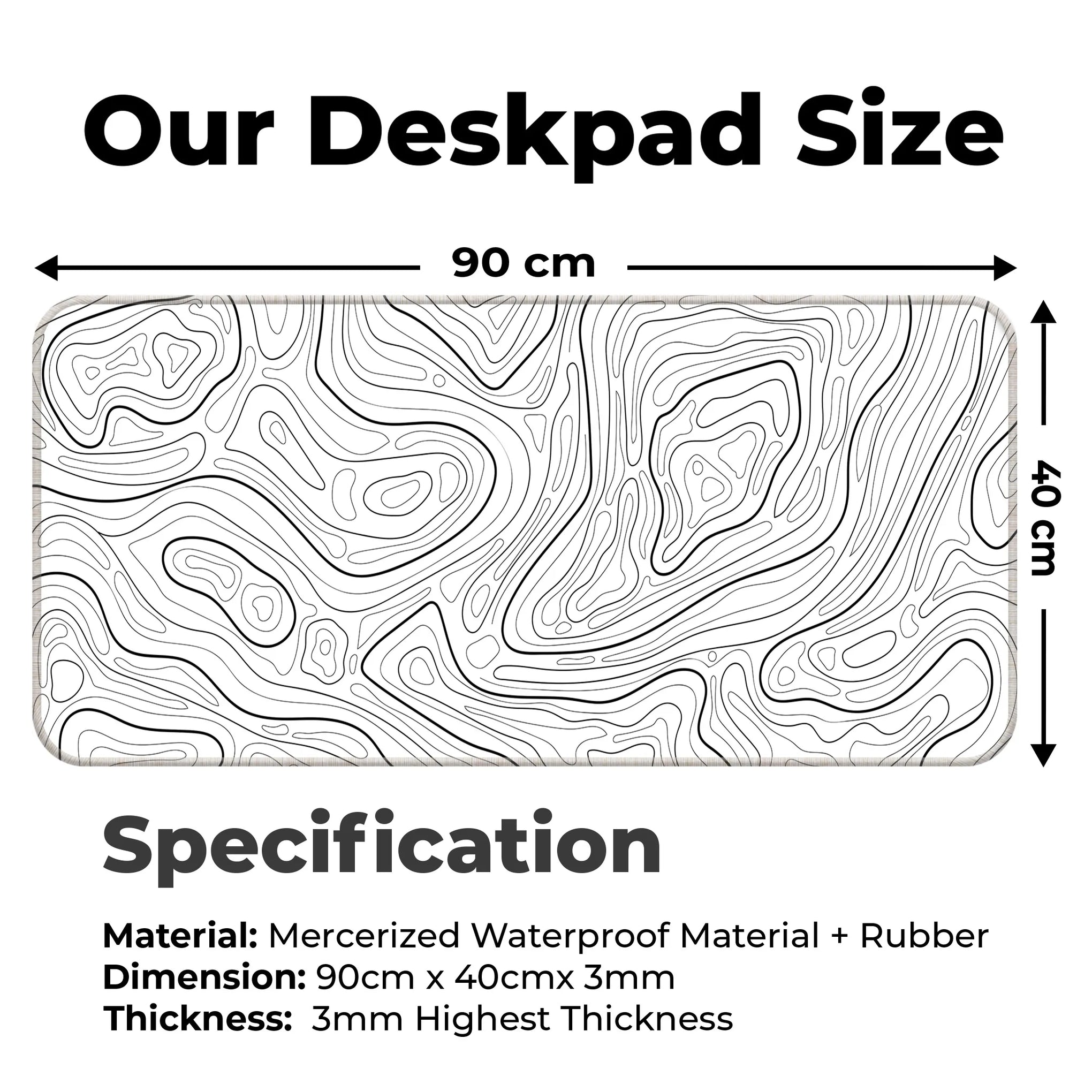 A clean and minimal contour line design for lovers of simplicity. This black & white topographic deskmat brings elegance and clarity to your desk while providing the perfect glide for your mouse and keyboard.