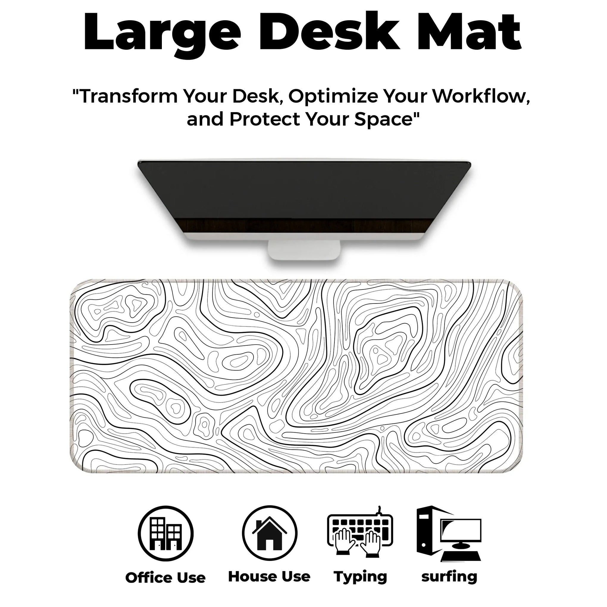 Monochrome Minimalist Topographic Deskmat