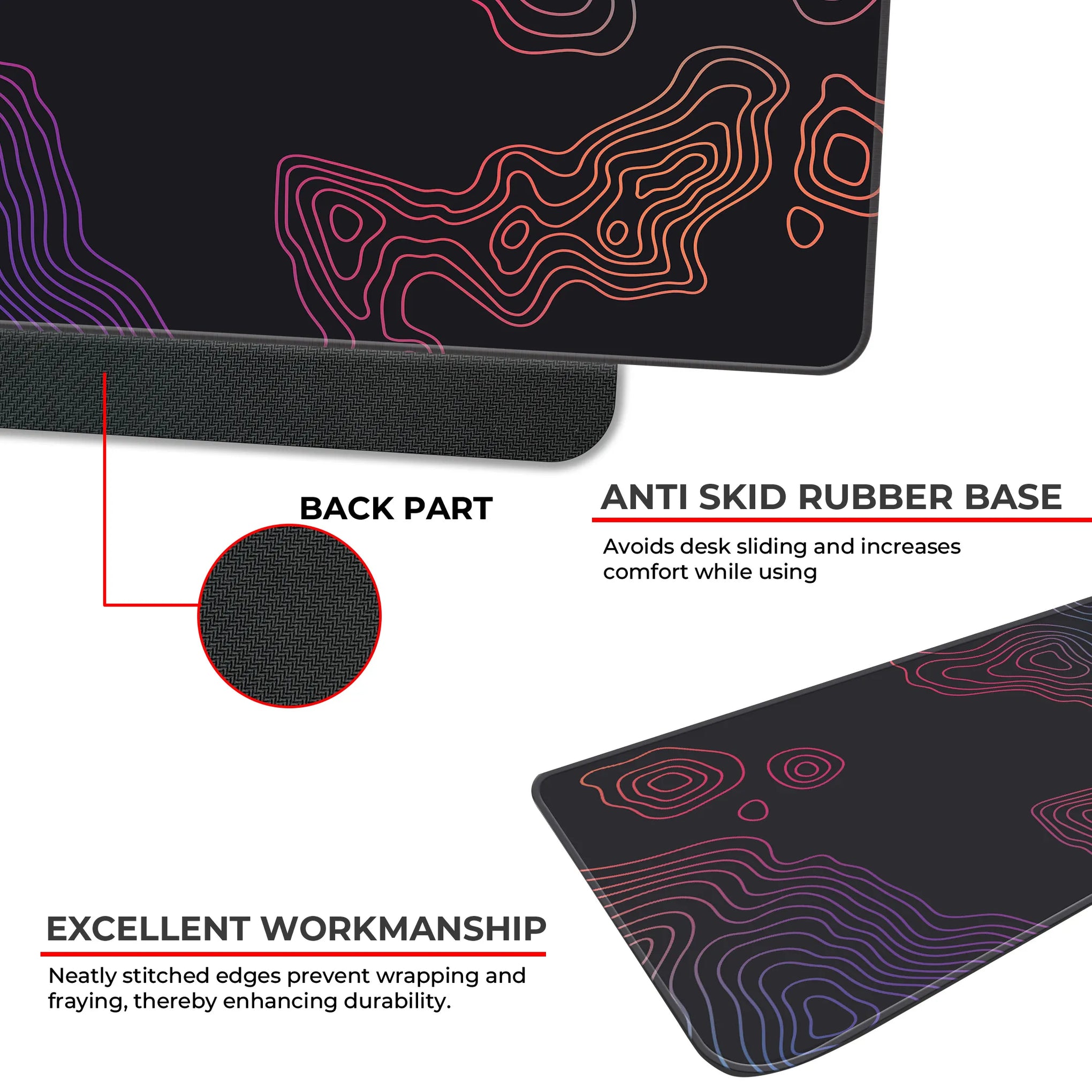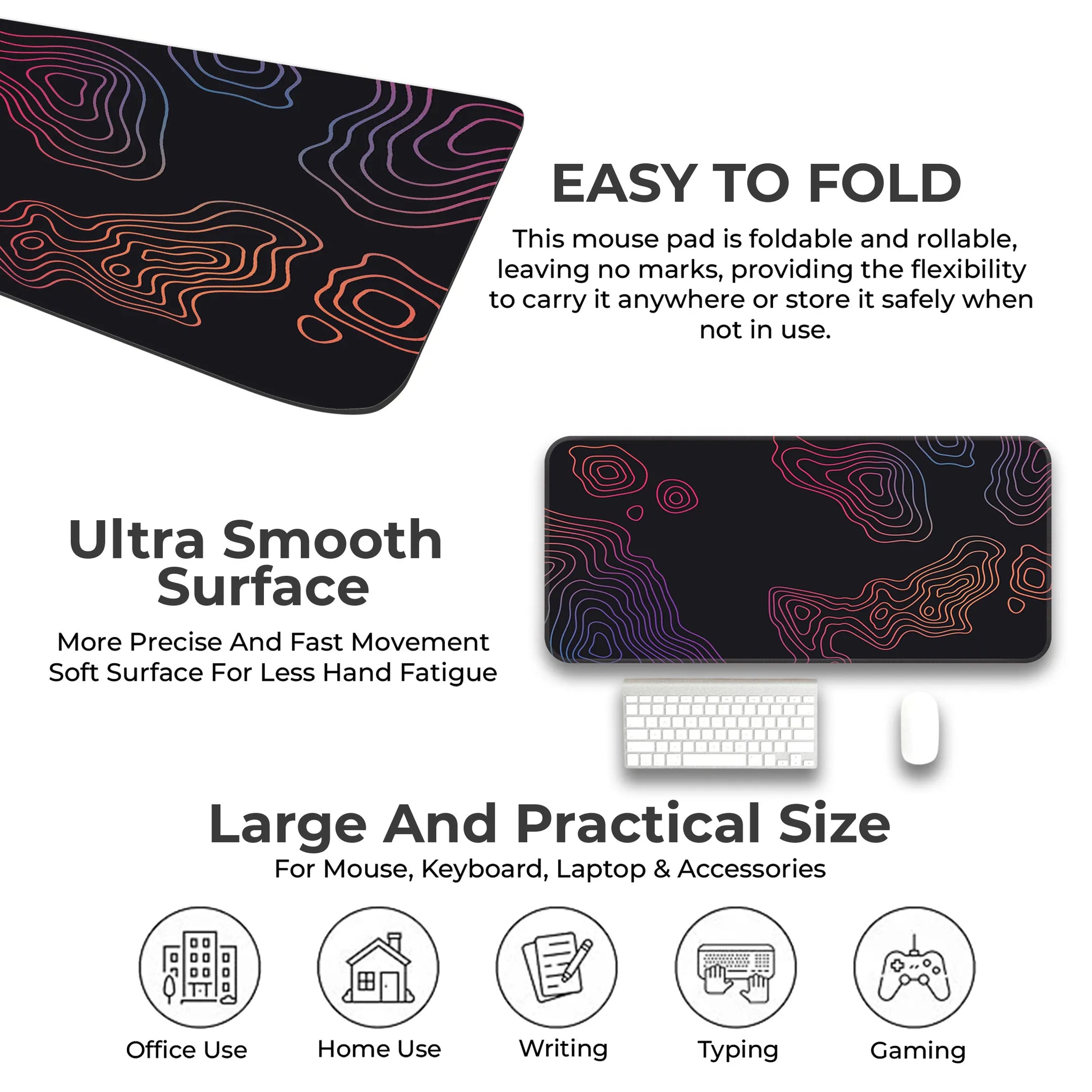 Bright, bold, and dynamic—the Multicolor Gradient Topographic Abstract Deskmat is designed for those who love modern aesthetics with a splash of creativity. The design features contour lines shifting in vibrant gradients of red, orange, purple, and blue against a dark base, giving a perfect balance between structure and chaos. This deskmat isn’t just visually captivating—it’s also engineered for performance. Enjoy seamless mouse control, stitched anti-fray durability, and a soft anti-slip underside that keeps it steady no matter how intense your gaming or work session gets. If you want your desk to reflect energy and originality, this abstract topographic piece is the ultimate choice.