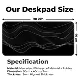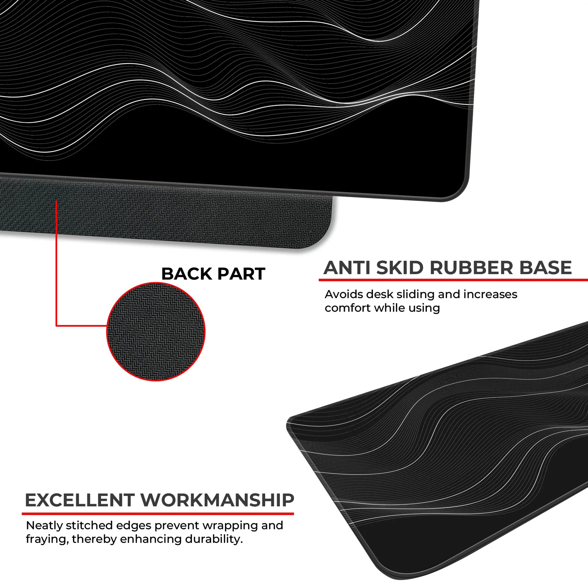 Upgrade your workspace with this abstract deskmat showcasing organic wave-like contour lines across a deep black background. The design reflects a balance of motion and calm, perfect for modern minimalists and creative minds. Whether you’re working, sketching, or gaming, the smooth surface ensures precise control, while the extended size protects your desk. Stitched edges and high-quality print guarantee both durability and aesthetic appeal. A true statement piece that merges functionality with art.
