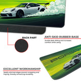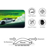 Turn your setup into a race circuit with this Porsche deskmat featuring a white GT model in full drift motion. Its dynamic green and yellow background enhances the bold look, while the extra-large design ensures space for both work and gaming gear. With a precise smooth surface and non-slip base, this deskmat is built for Porsche lovers and high-performance enthusiasts.