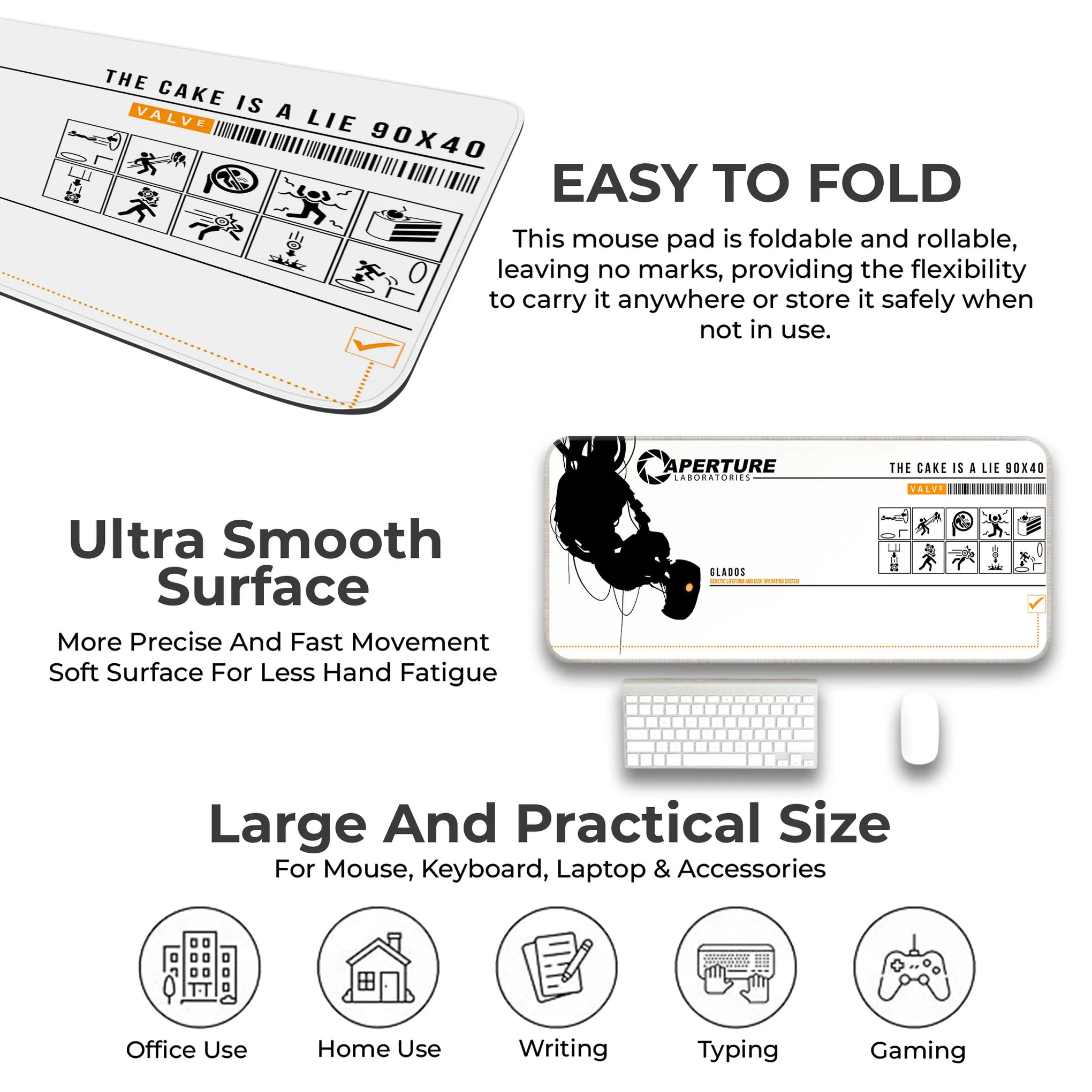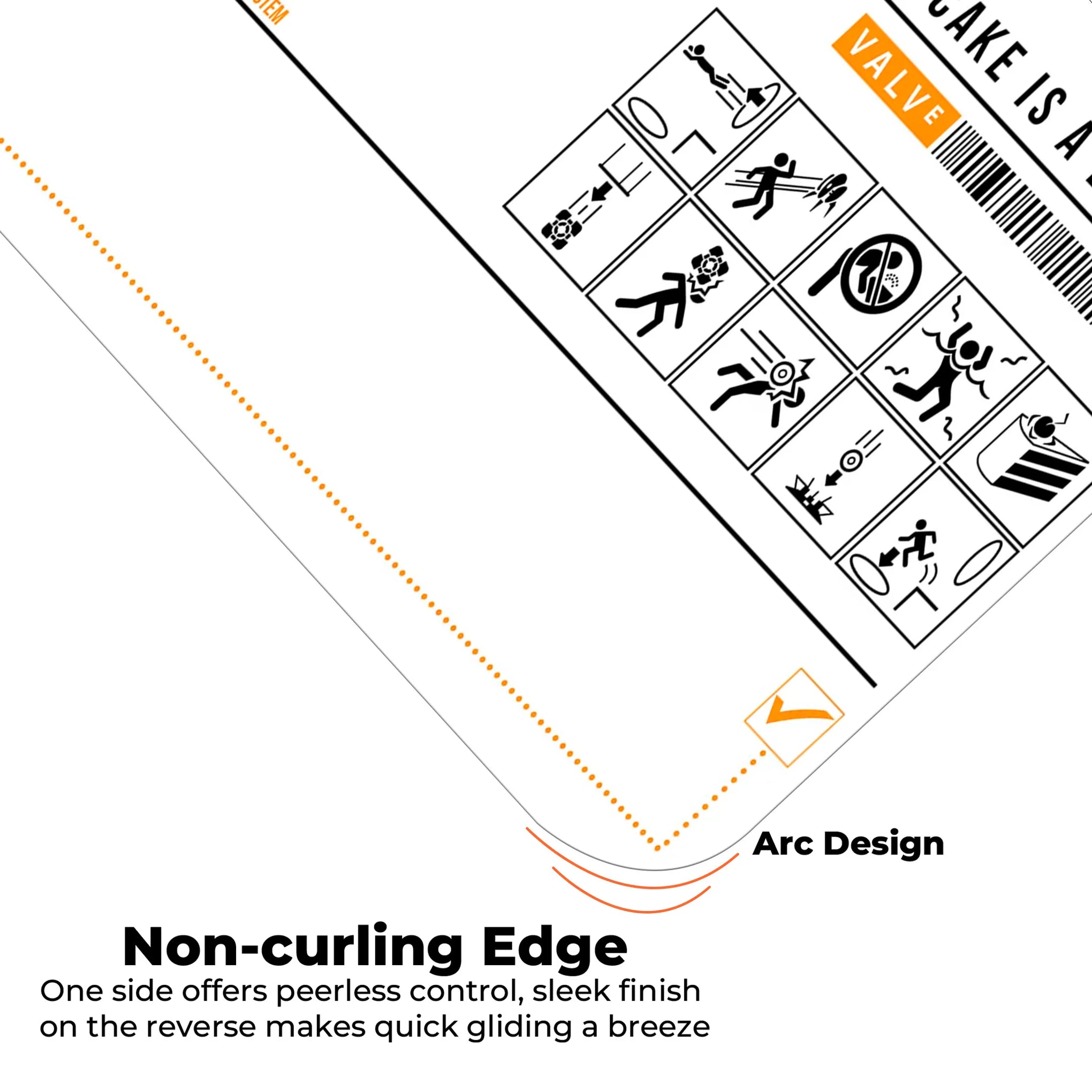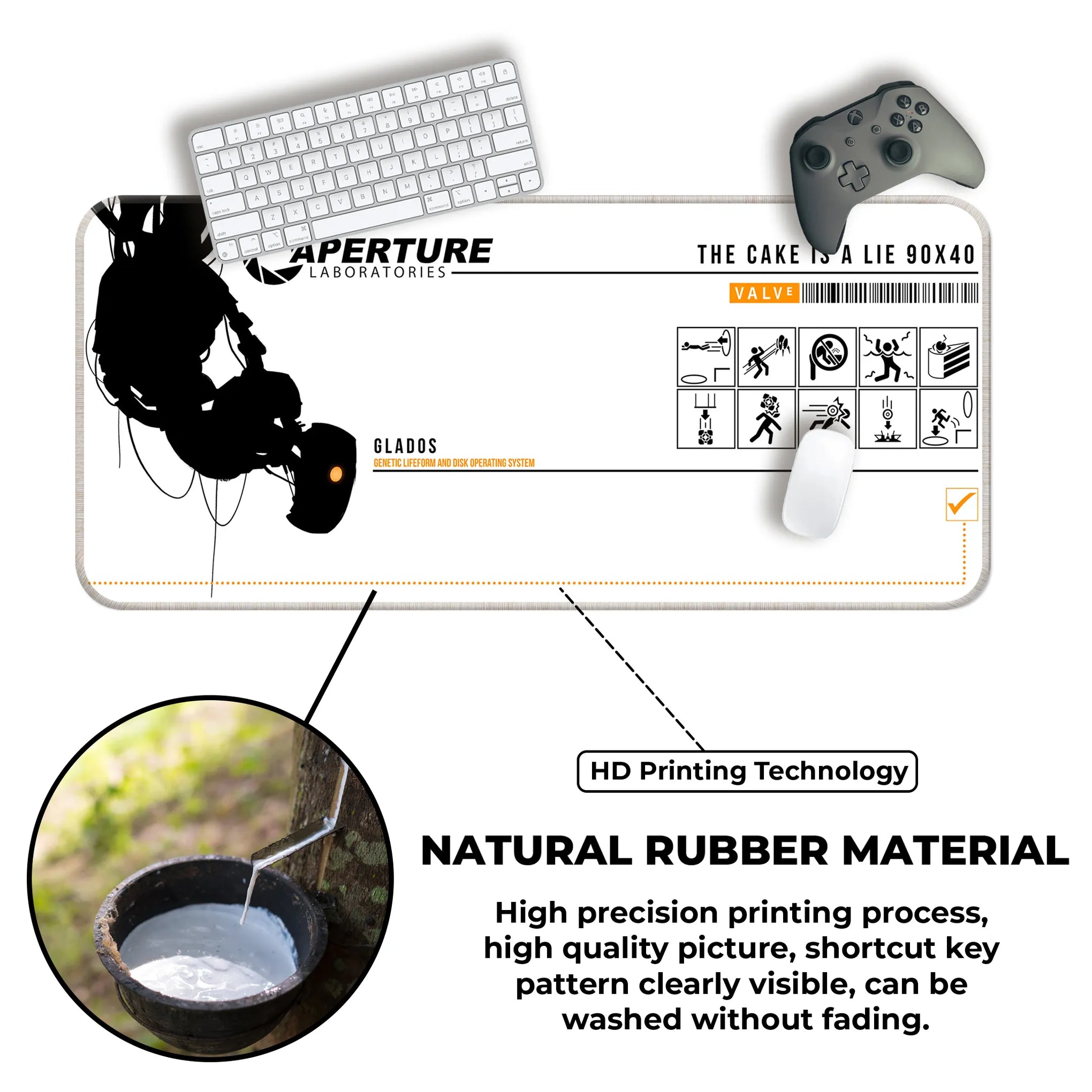 Enter Aperture Labs with this clean white desk mat featuring GLaDOS, iconic warning signs, and the famous line “The cake is a lie.” A must-have for Valve and Portal fans.