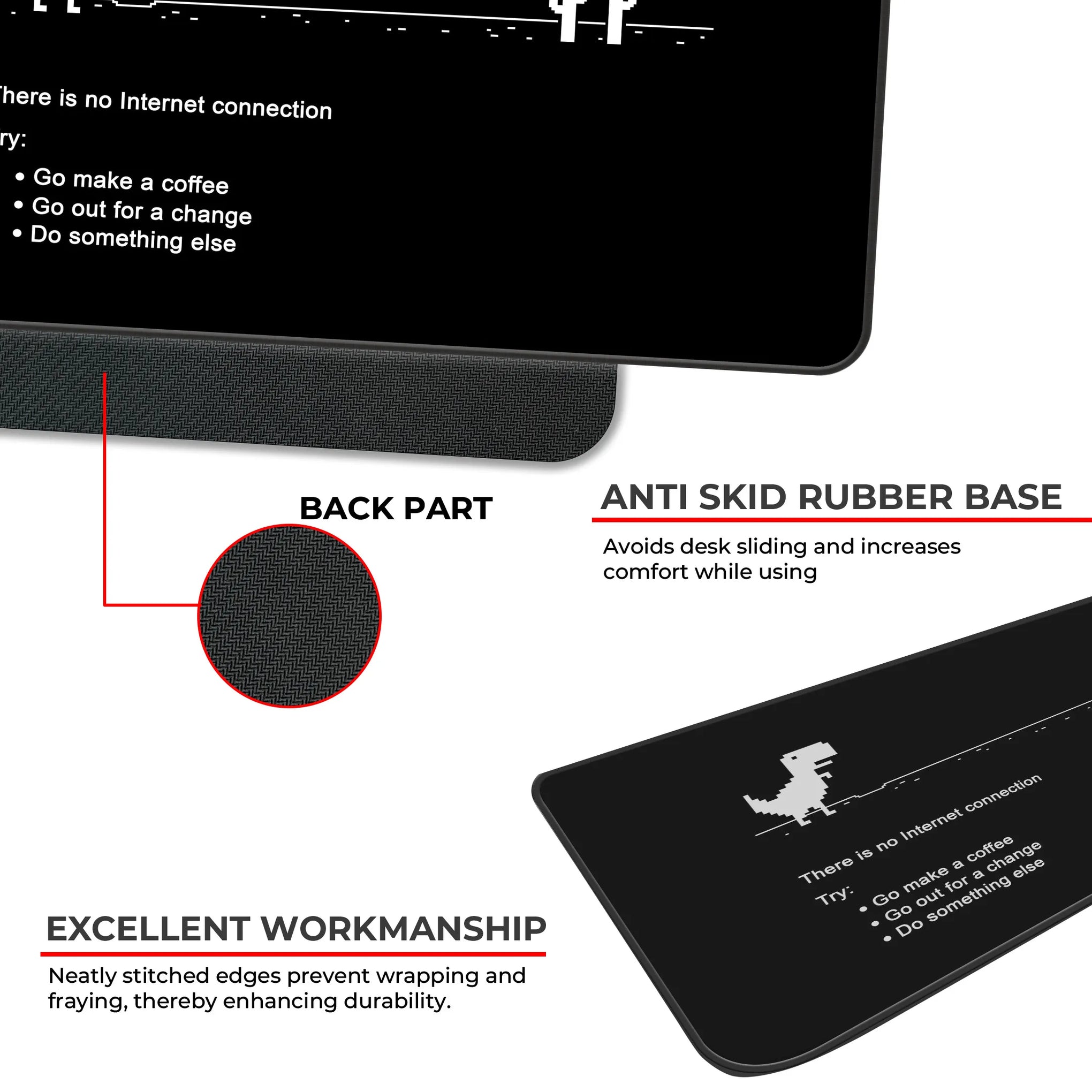 Relive the nostalgia of the no-internet Chrome dinosaur game with this fun deskmat. A perfect minimalist design for gamers and retro lovers alike, keeping your desk unique and playful.