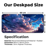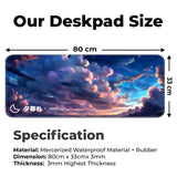 Introducing the Cloudy Hues Deskmat, the perfect blend of style and functionality for your workspace! This large extended mouse pad is designed to enhance your gaming and office experience, providing ample space for your mouse, keyboard, and laptop. Measuring a generous size, the Cloudy Hues Deskmat accommodates everything you need on your desk, creating a seamless setup for both work and play.