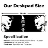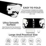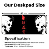 Dive into the eternal conflict of light and darkness with the Heaven & Hell Skull Clash Desk Mat. Featuring two opposing skulls—one crowned with a halo, the other armed with horns—this striking black-and-white artwork captures the essence of duality. The center displays the powerful red Japanese kanji (Zugaikotsu), meaning "Skull", topped with a crimson crow—a symbol of mystery and transformation. This mat is a bold choice for gamers, anime fans, and lovers of dark Japanese art.