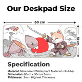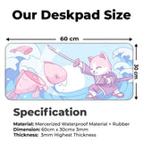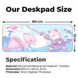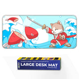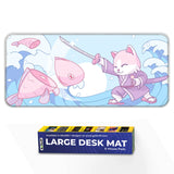Elevate your workspace or gaming setup with the exquisite Japanese Cat Deskmat, a perfect blend of style and functionality. This large extended mouse pad is designed to accommodate your mouse, keyboard, and laptop, providing ample space for all your desktop accessories. With a generous size, it effortlessly fits on any desk or table, making it an ideal choice for both home offices and professional environments.