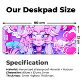 Introducing the Kawai Fashion Girl Deskmat, the perfect blend of style and functionality for your workspace. This large extended mouse pad is designed to enhance your gaming and office experience while adding a touch of charm to your desk setup. Measuring generously to accommodate your laptop, keyboard, and mouse, it provides ample space for all your computer accessories. Crafted with a 3mm thickness, the mat ensures a comfortable and smooth surface for extended use, whether you're engaged in a fierce gaming session or tackling office tasks.