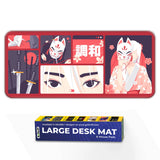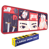 Crafted for creators, coders, and collectors, this extended desk mat merges kawaii aesthetics with fierce samurai symbolism—perfect for anime fans or anyone who loves minimalist storytelling through visuals.