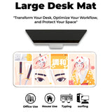 Unmask your inner warrior with the Kitsune Spirit Desk Mat, a stunning blend of anime artistry and traditional Japanese culture. Featuring a white-haired samurai girl holding a fox mask, cherry blossoms, katana swords, origami cranes, and bold Japanese typography, this desk mat tells a story of strength, mystery, and elegance.