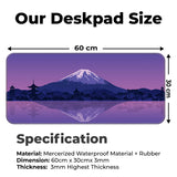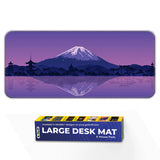 Bring timeless calm and classic Japanese beauty to your setup with the Mount Fuji Reflection Desk Mat. This design features the iconic snow-capped Mount Fuji set against a dreamy purple-pink sunset sky, mirrored perfectly in still water. Silhouetted pagodas, torii gates, and trees create a peaceful skyline that evokes tradition, tranquility, and balance.