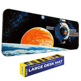 Launch your creativity into orbit with the Outer Space Desk Mat featuring a stunning scene of a massive circular space station near a glowing orange planet. The sci-fi detail on the spacecraft is incredibly crisp, surrounded by constellations and galactic dust clouds. The rich cosmic tones and interstellar theme are perfect for anyone who dreams beyond the stratosphere.