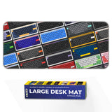 A vibrant visual of mechanical keyboards in every color combo imaginable. This desk mat is a must-have for keep enthusiasts and RGB custom build fans.