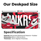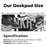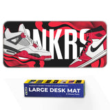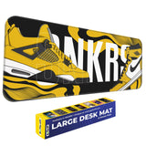 Step up your desk game with this Sneakerhead Desk Mat, featuring iconic retro Nike sneakers in bold yellow and black hues. Perfect for lovers of kicks culture, this mat blends urban style with streetwear attitude. The background shouts SNKRS in giant bold letters, framed by detailed illustrations of two legendary sneakers that pop right off your workspace.