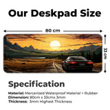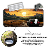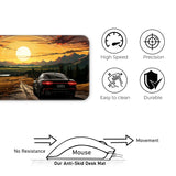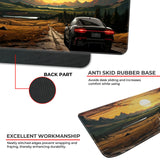 Feel the thrill of the open road every time you sit at your desk with the Sunset Road Trip Anime Desk Mat, a stunning AI-generated art piece that merges a high-speed drive with serene mountain views. The design captures a sleek car heading into a glowing sunset over cracked terrain and sweeping valleys—an homage to adventure, freedom, and the road less traveled.