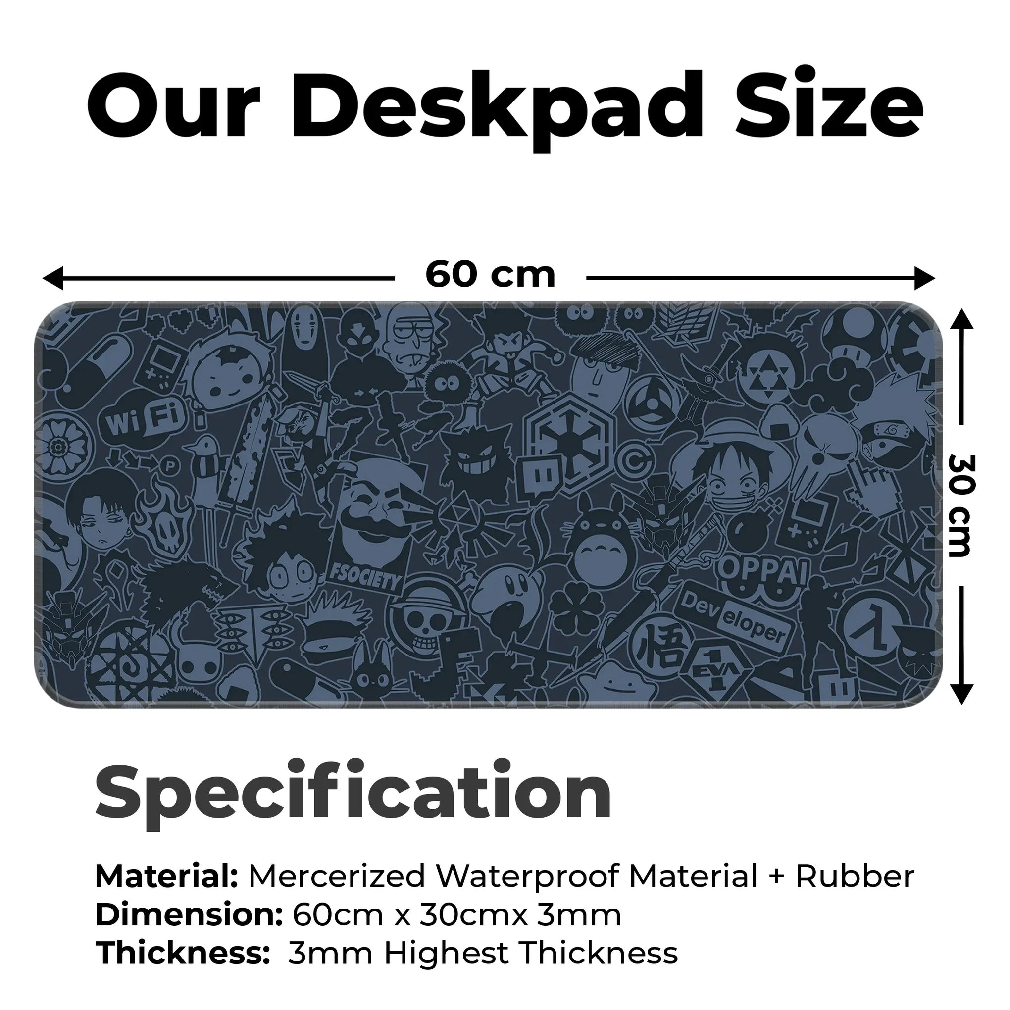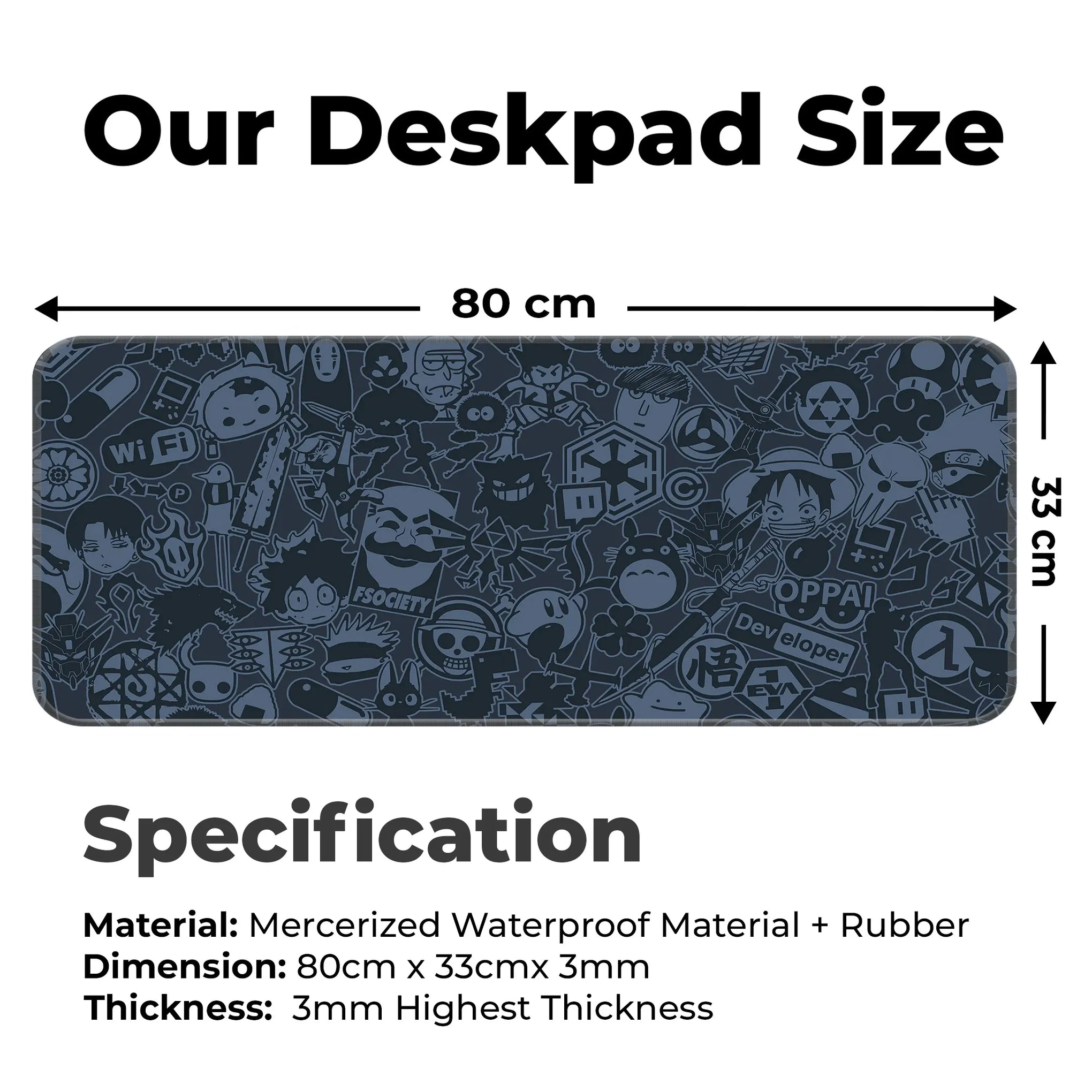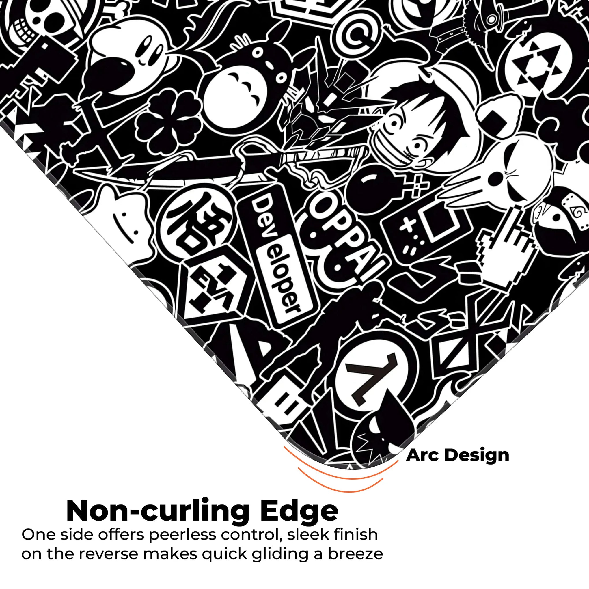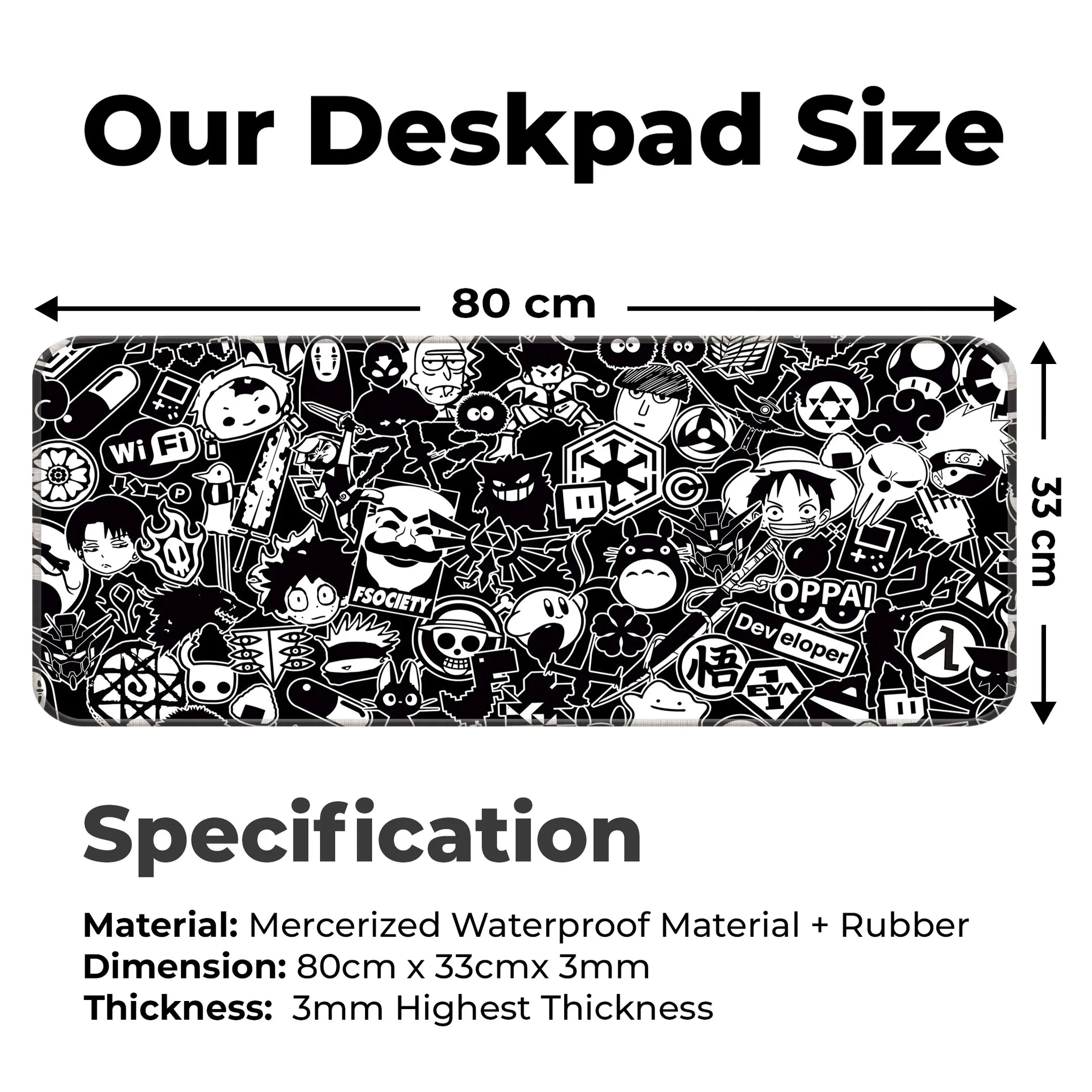 Perfect for anime lovers, programmers, gamers, and otakus, this mat speaks your language with symbols like Wi-Fi icons, hacker masks, gameboys, dev tools, and OPPAI signs, all in sleek monochrome red.