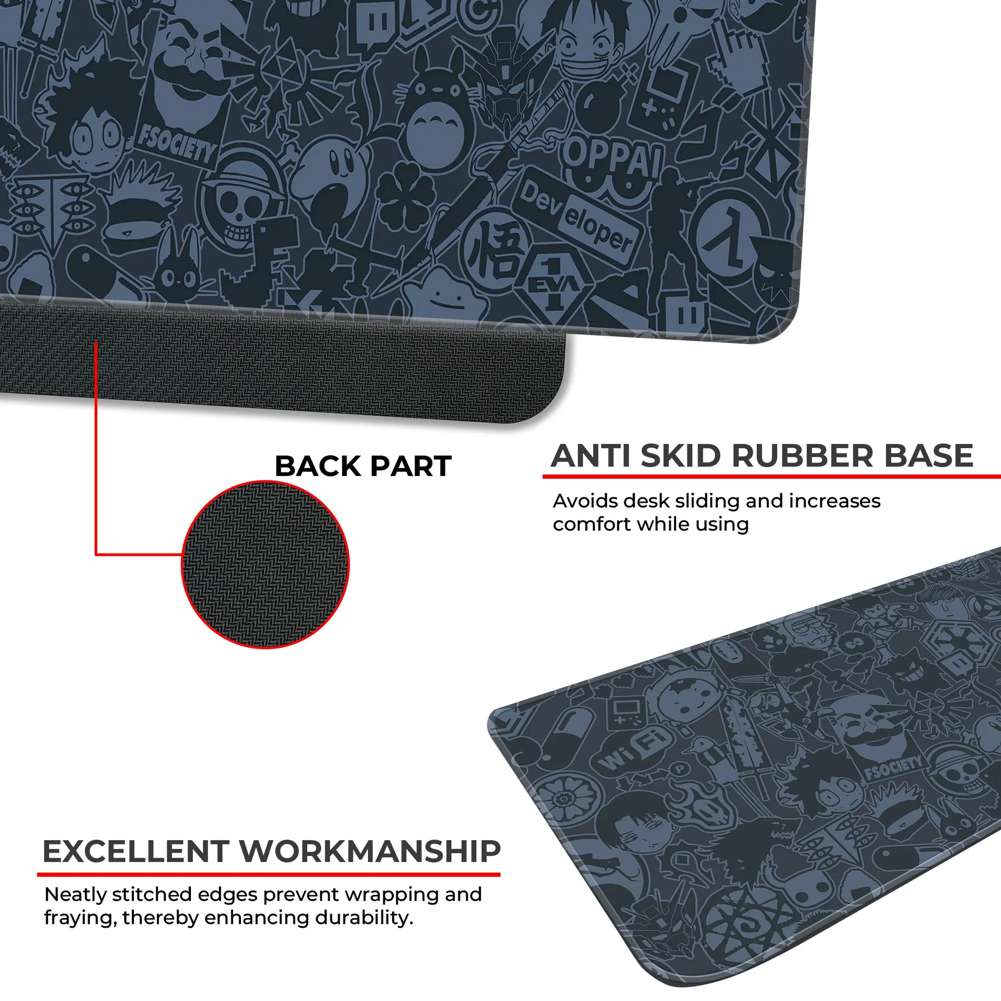 No more sliding—our anti-slip rubber base keeps your desk mat firmly in place, offering a secure grip and distraction-free use.