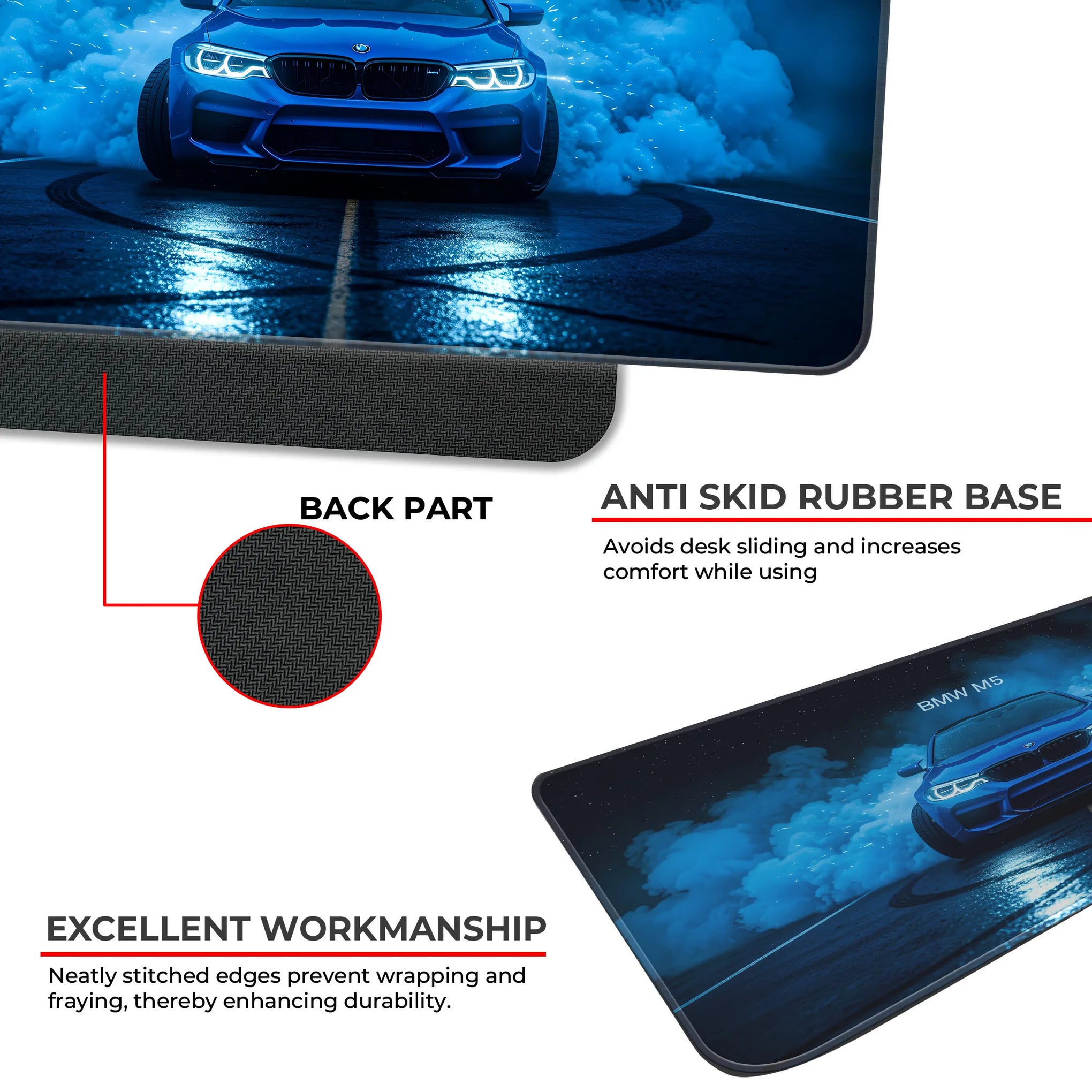 Transform your desk into a racetrack with this BMW M5 deskmat, featuring a stunning night-shot design with glowing headlights and smoky drift trails. The extra-large surface offers space for keyboard, mouse, and accessories, while the premium smooth fabric ensures precise tracking and comfort. Its anti-slip rubber base makes it perfect for both work and gaming setups.