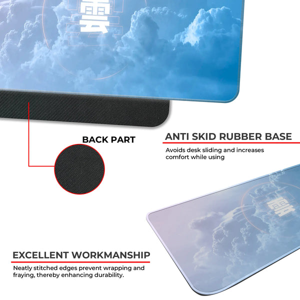 Transform your workspace with the Cloud Design Desk Mat, the ultimate accessory for both gamers and professionals seeking a sleek and functional surface. This Large Extended Mouse Pad provides ample space for your mouse, keyboard, and laptop, making it the perfect addition to any desk or office setup. Measuring generously, this table mat ensures that you have enough room for all your computing needs, whether youÕre working on your PC, navigating your desktop, or immersing yourself in gaming.