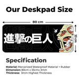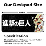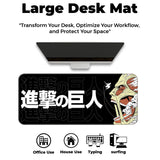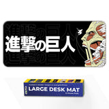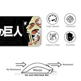 Bring the intensity of AoT to your desk with this bold Colossal Titan design. A high-impact anime desk mat for fans of epic battles and dramatic visuals.