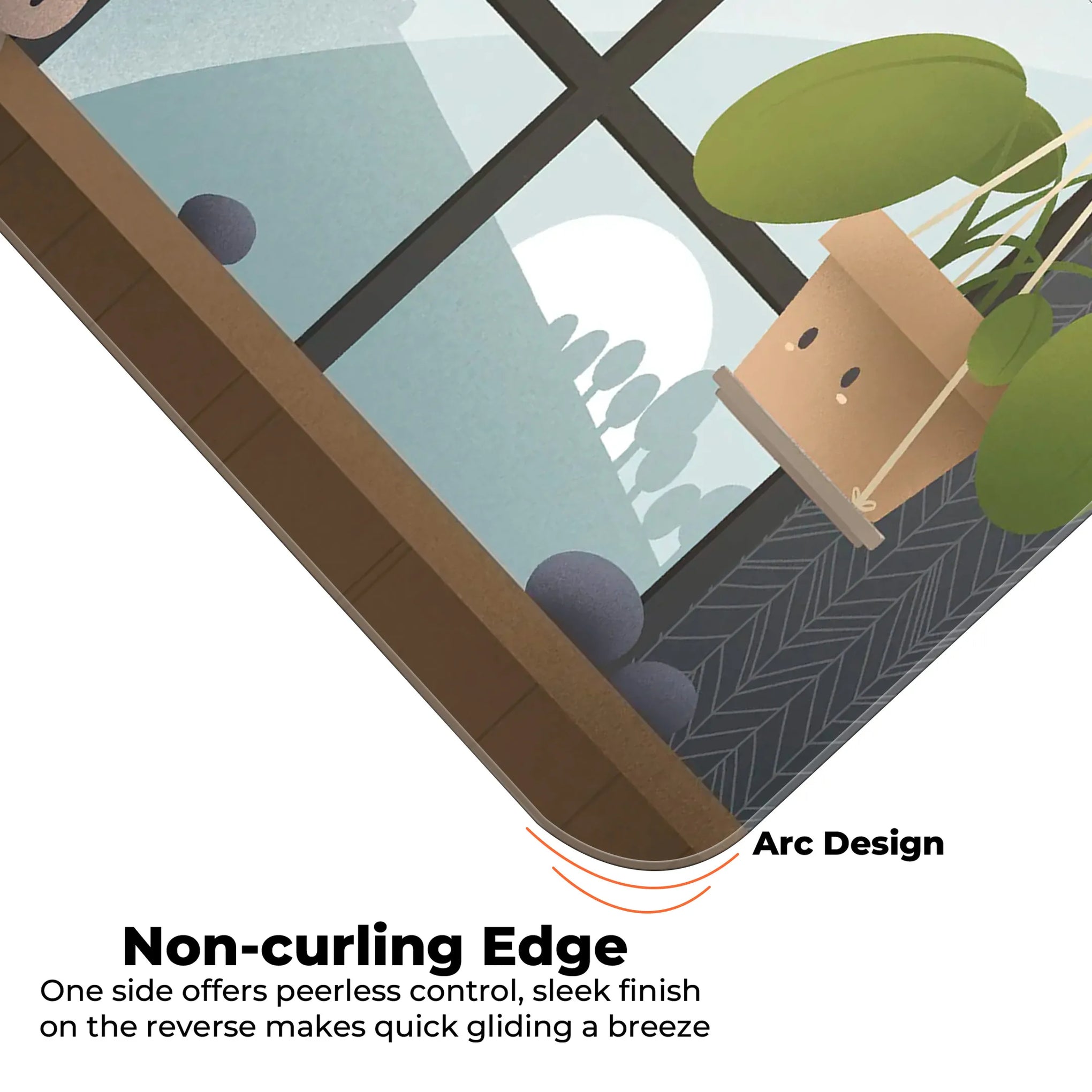 The gentle backdrop of muted blues, greens, and earth tones makes it the perfect piece to match any minimalist or plant-themed setup. Whether you're working, gaming, studying, or sipping chai by the window, this mat adds a wholesome, earthy vibe to your daily routine.