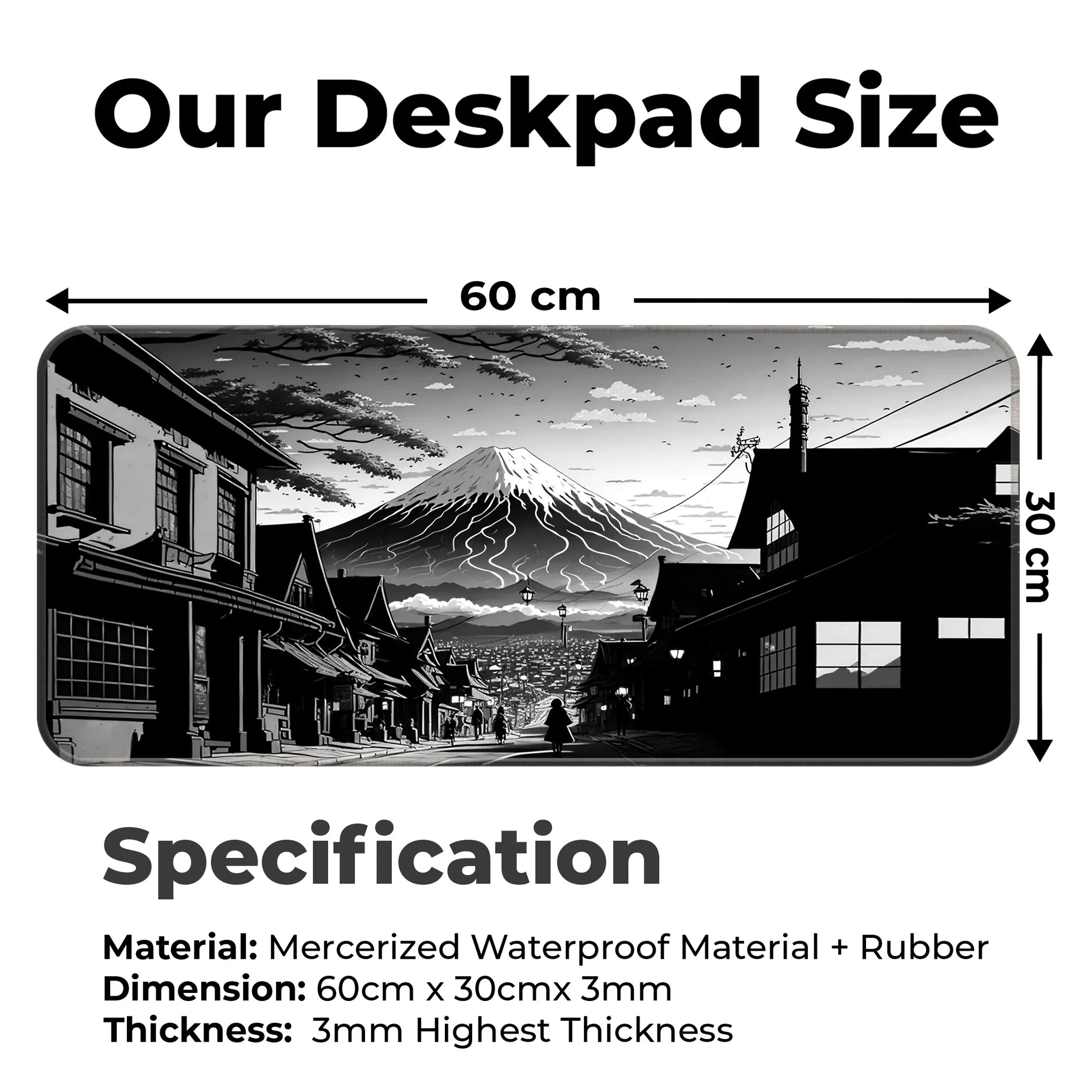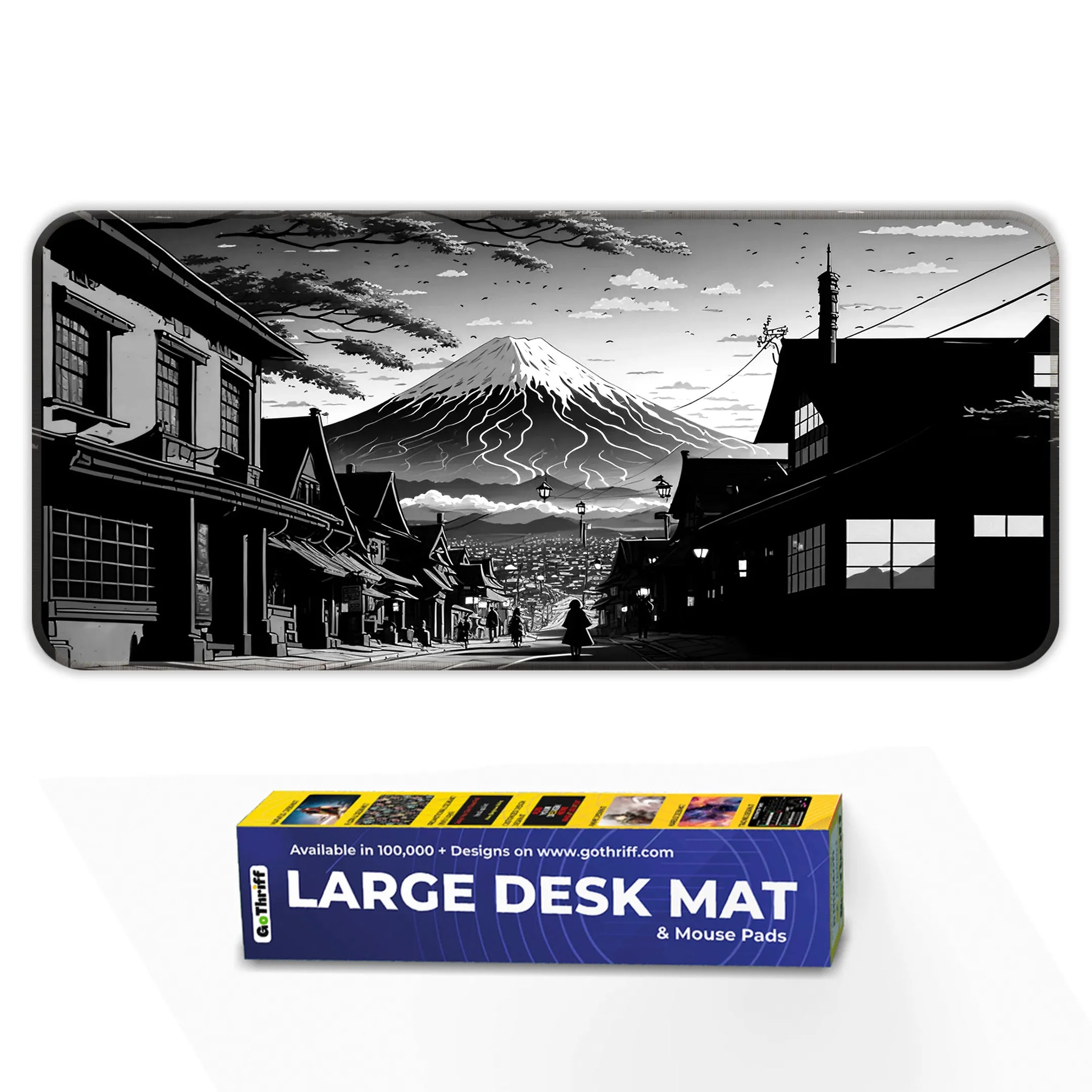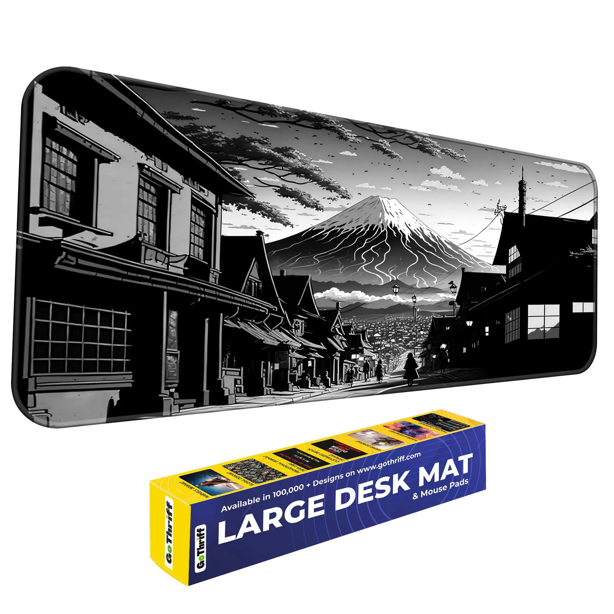 Bring the serenity and strength of Japan’s most iconic landscape to your gaming setup with the Fuji Noir Desk Mat. This breathtaking black-and-white artwork captures a traditional Japanese street leading toward a majestic Mt. Fuji, cloaked in snow and mystery. Inspired by classic manga and ink wash painting, the art style blends the nostalgic charm of Edo-period architecture with modern minimalism.
