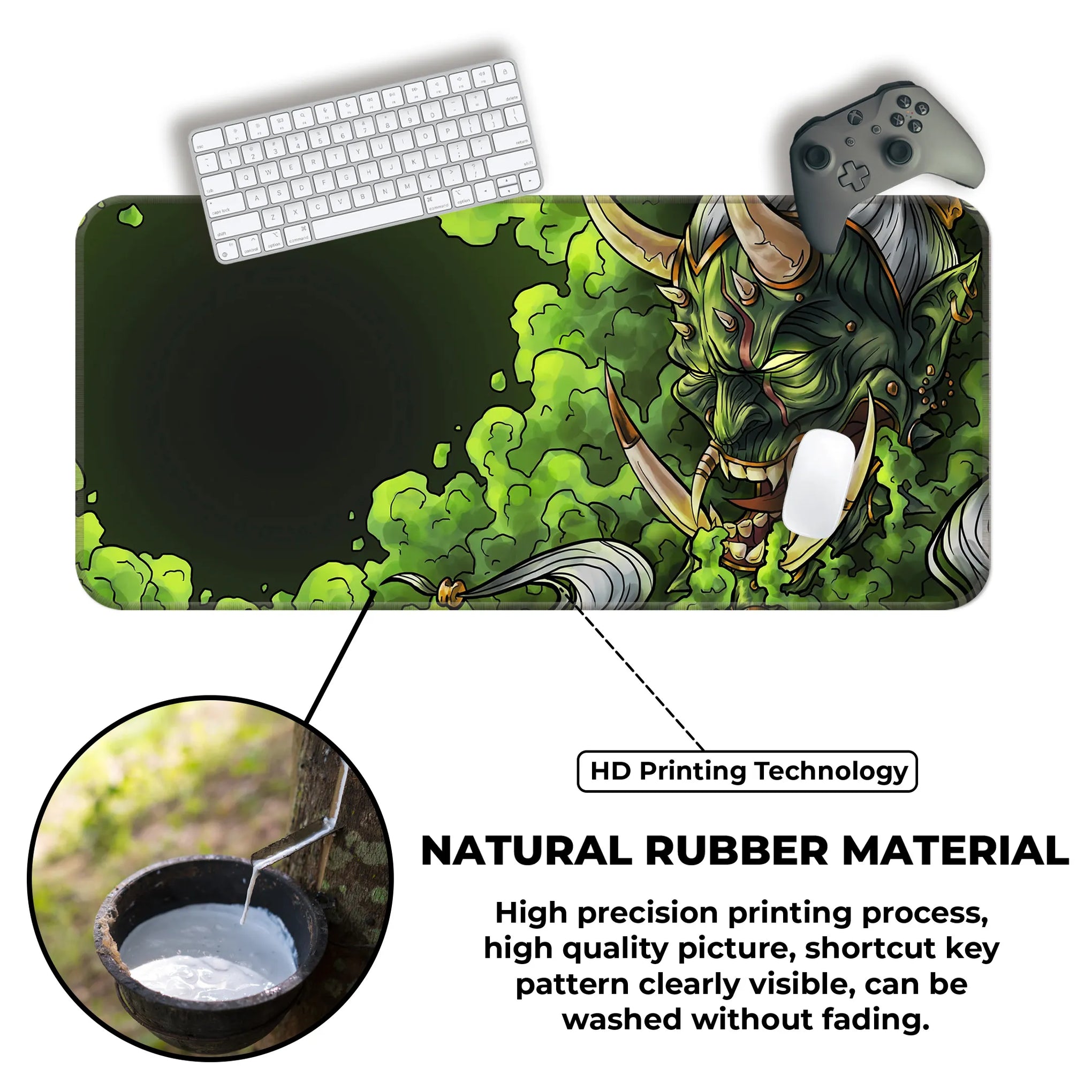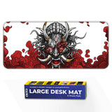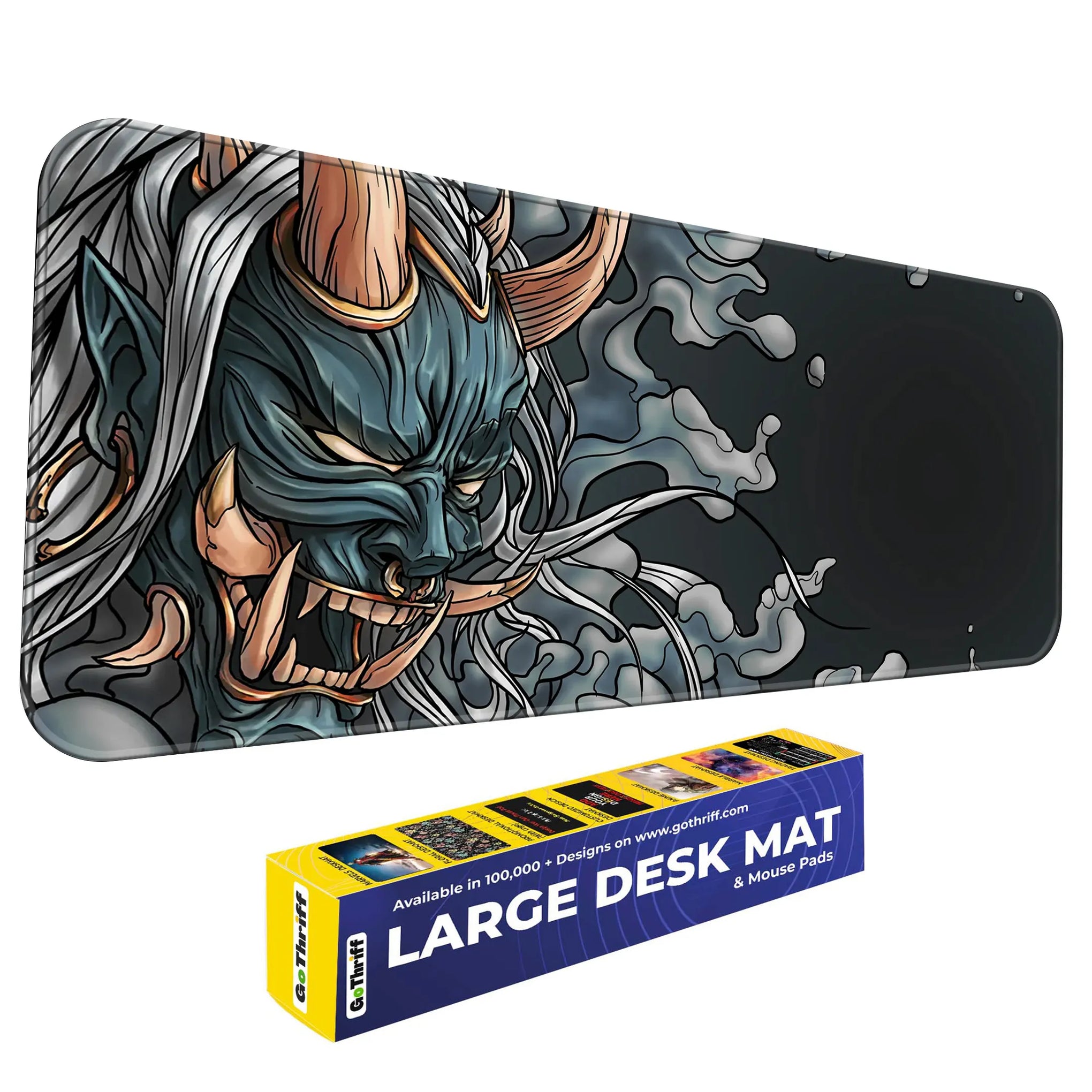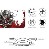 Unleash your inner warrior with this Japanese Oni Demon Desk Mat, showcasing a fearsome traditional Hannya-style mask engulfed in swirling red smoke. With intricate horned features, glowing red eyes, and tattoo-like patterns etched across the mask, this artwork channels the power and mystique of Japanese folklore.