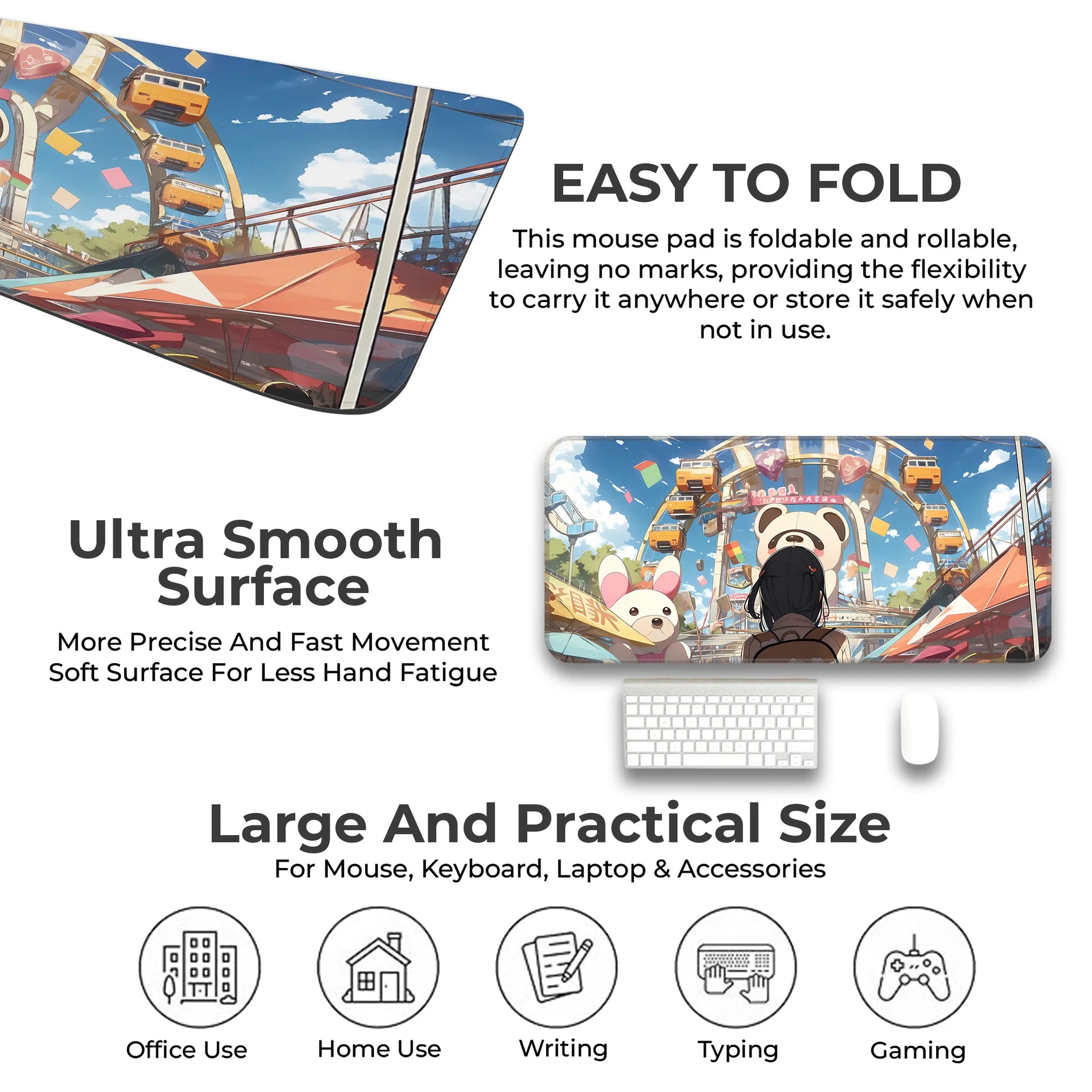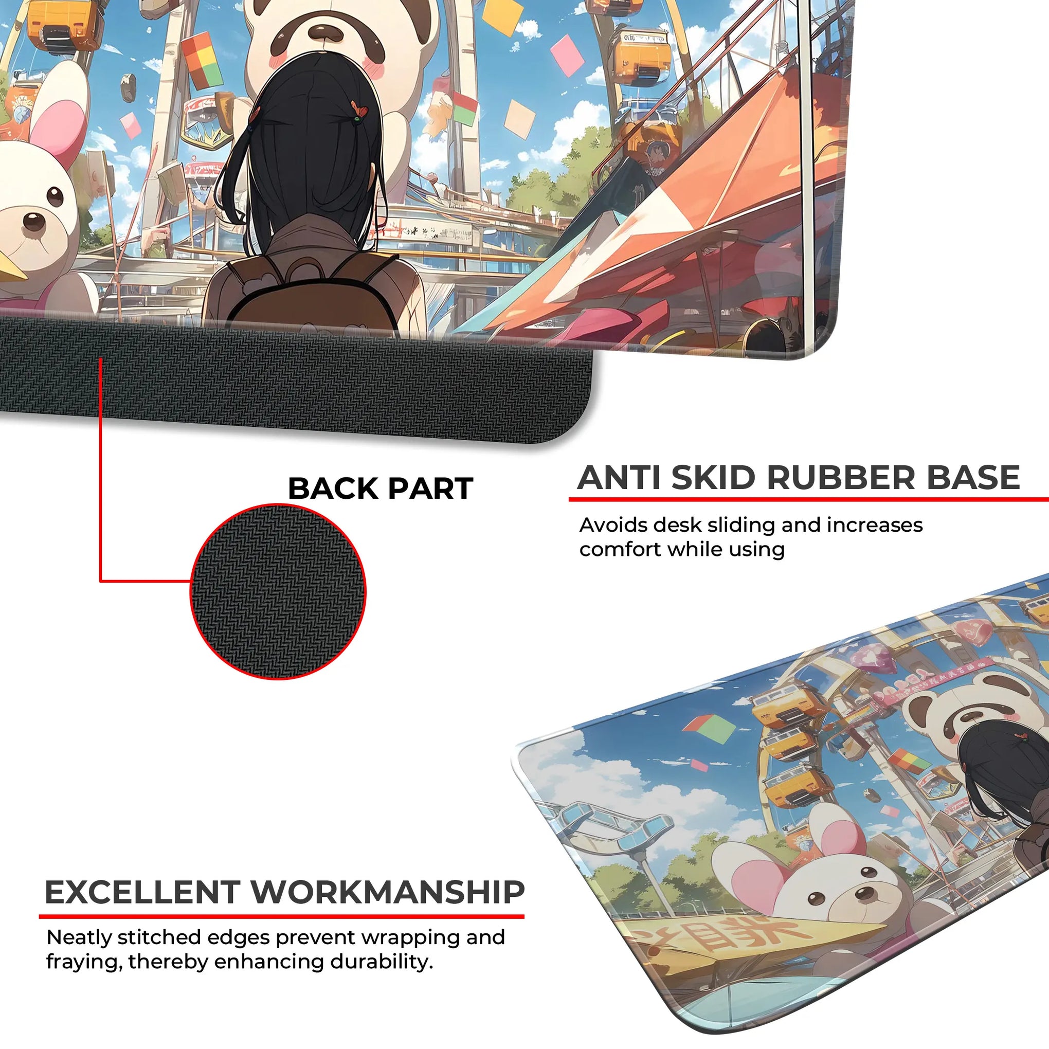 Introducing the Kawai Amusement Girl Deskmat, the perfect blend of aesthetic charm and functional design for your gaming and office needs. This large extended mouse pad is not just a visual delight; it enhances your workspace with its generous size, providing ample room for your keyboard and mouse, ensuring seamless movements during intense gaming sessions or productive work hours. Crafted with a 3mm thickness, the deskmat offers a comfortable surface for your wrists while maintaining durability and stability.