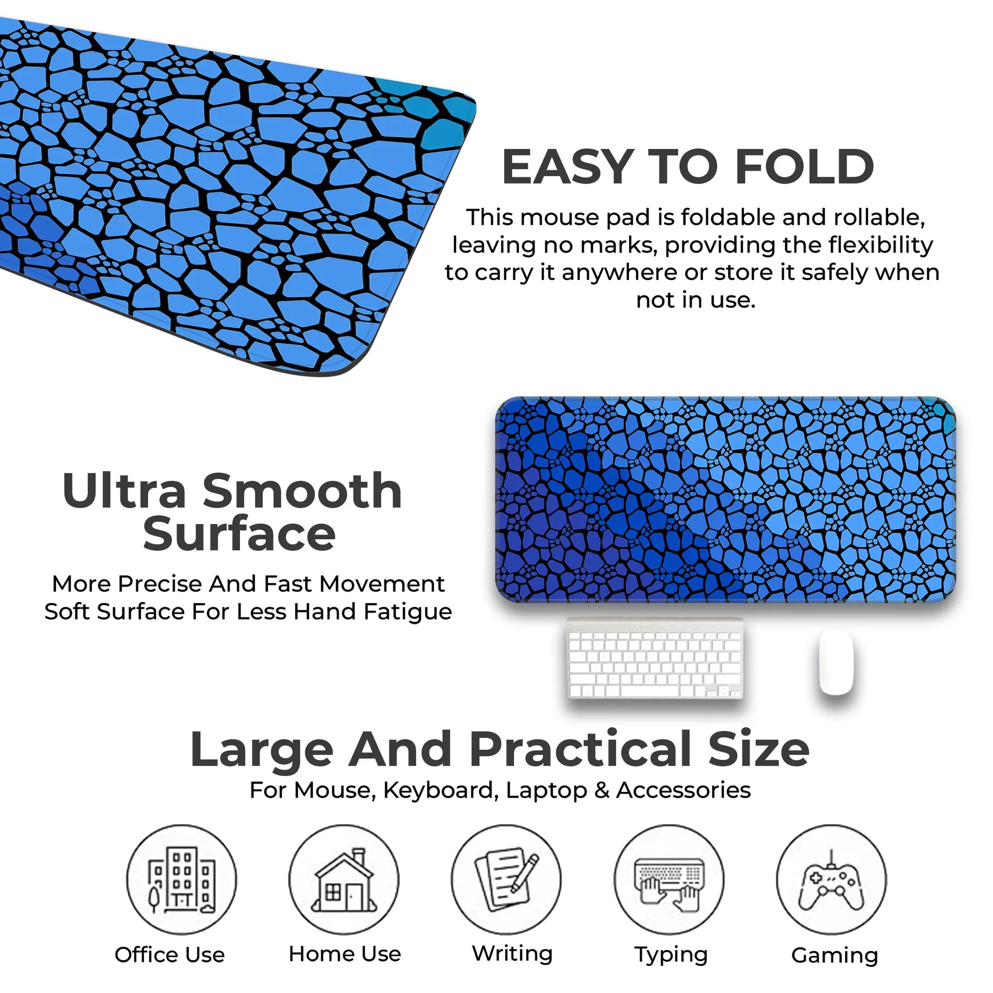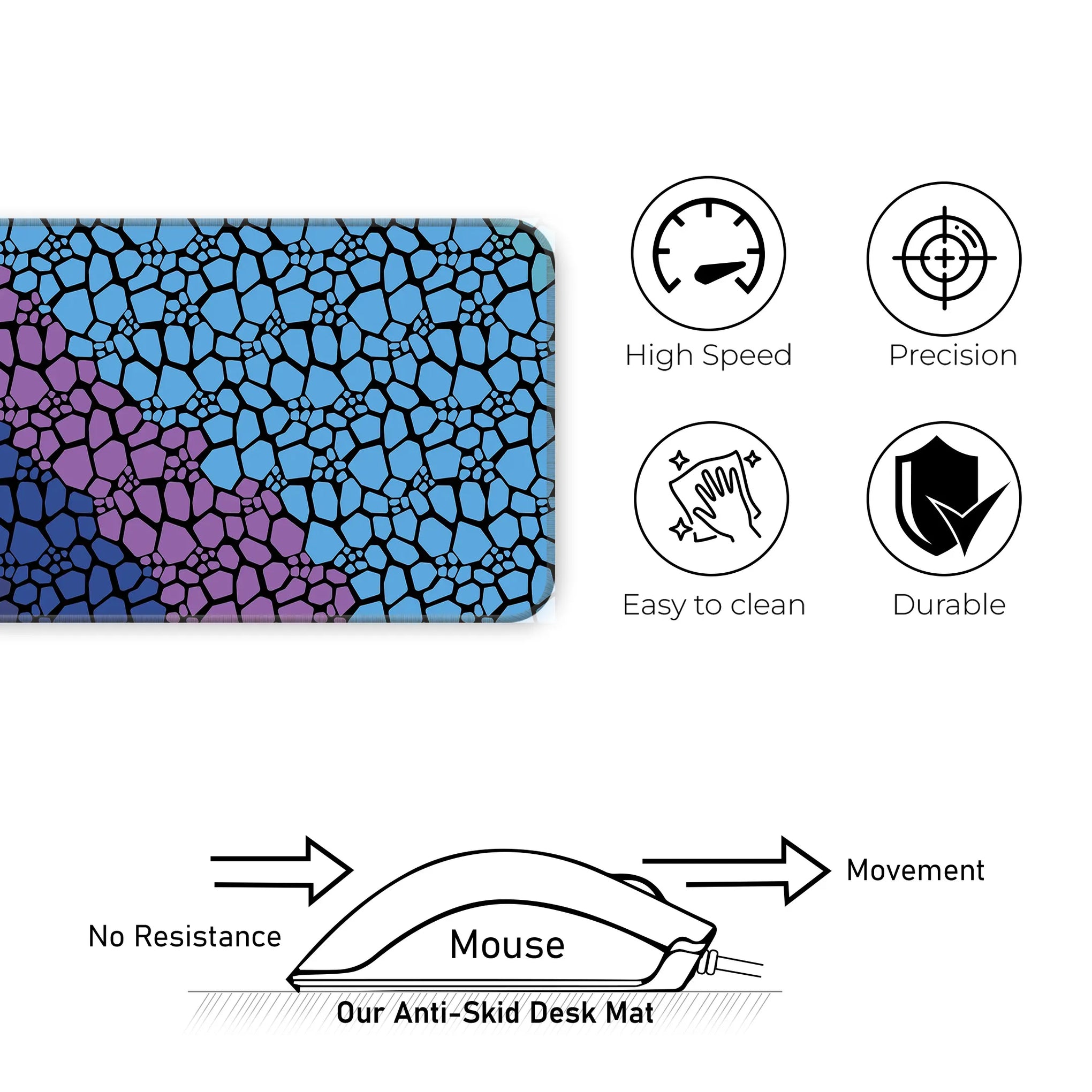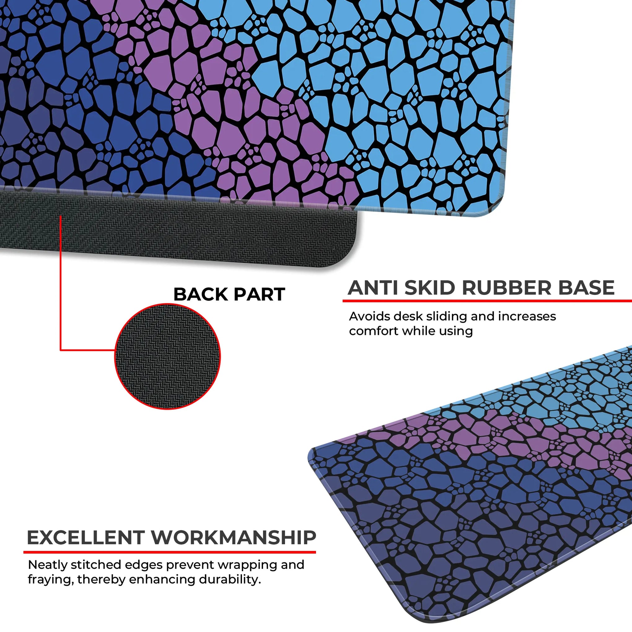 No more sliding—our anti-slip rubber base keeps your desk mat firmly in place, offering a secure grip and distraction-free use.