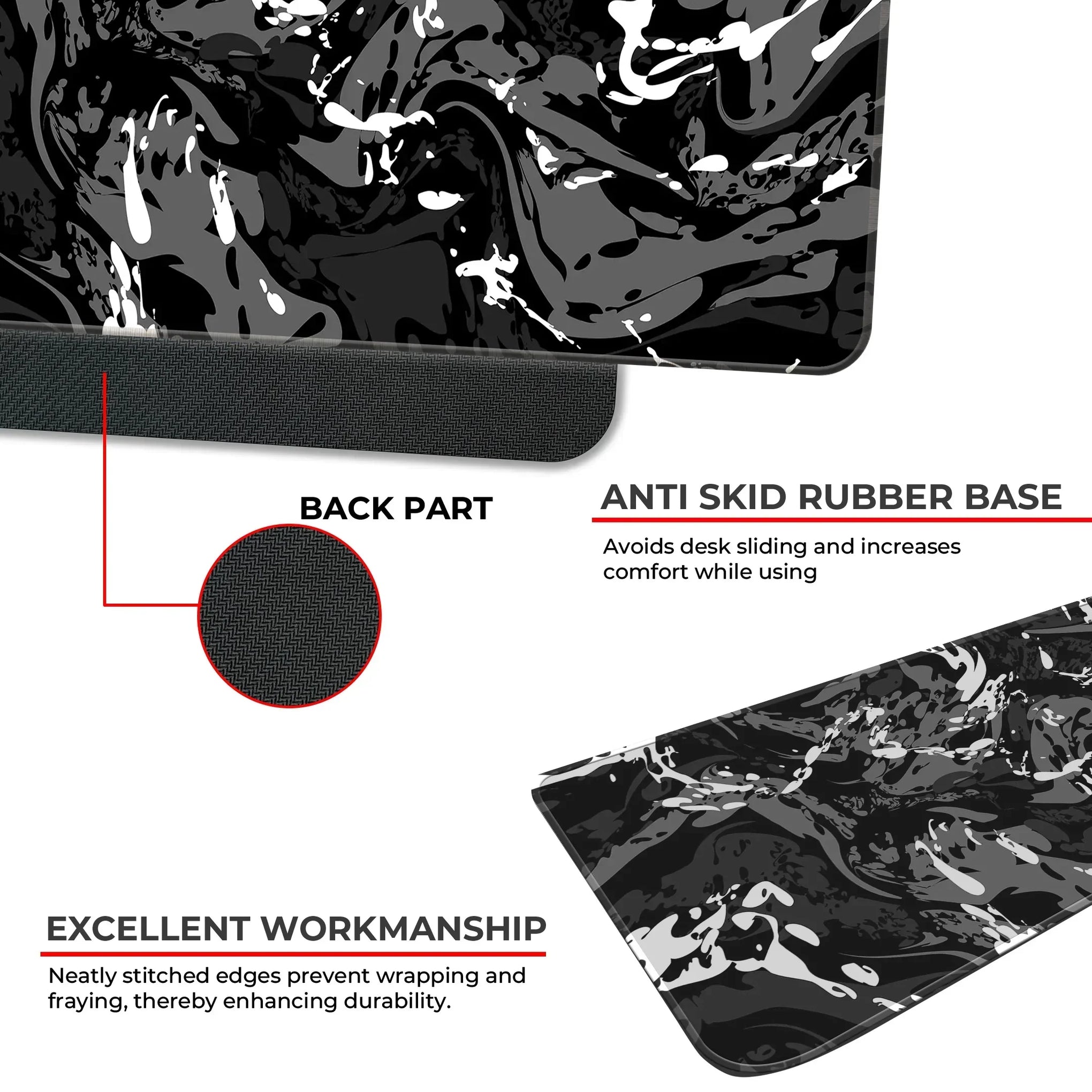 Elevate your workspace with our Marble Theme Design Desk Mat, a stunningly stylish and functional accessory for your desk. This large extended mouse pad offers a spacious surface, perfect for accommodating your laptop, keyboard, and mouse, making it an ideal addition for both gaming and office environments. Measuring a generous size, the mat provides ample room for movement, ensuring that your workflow remains uninterrupted whether youÕre working on your computer or engaged in intense gaming sessions.
