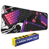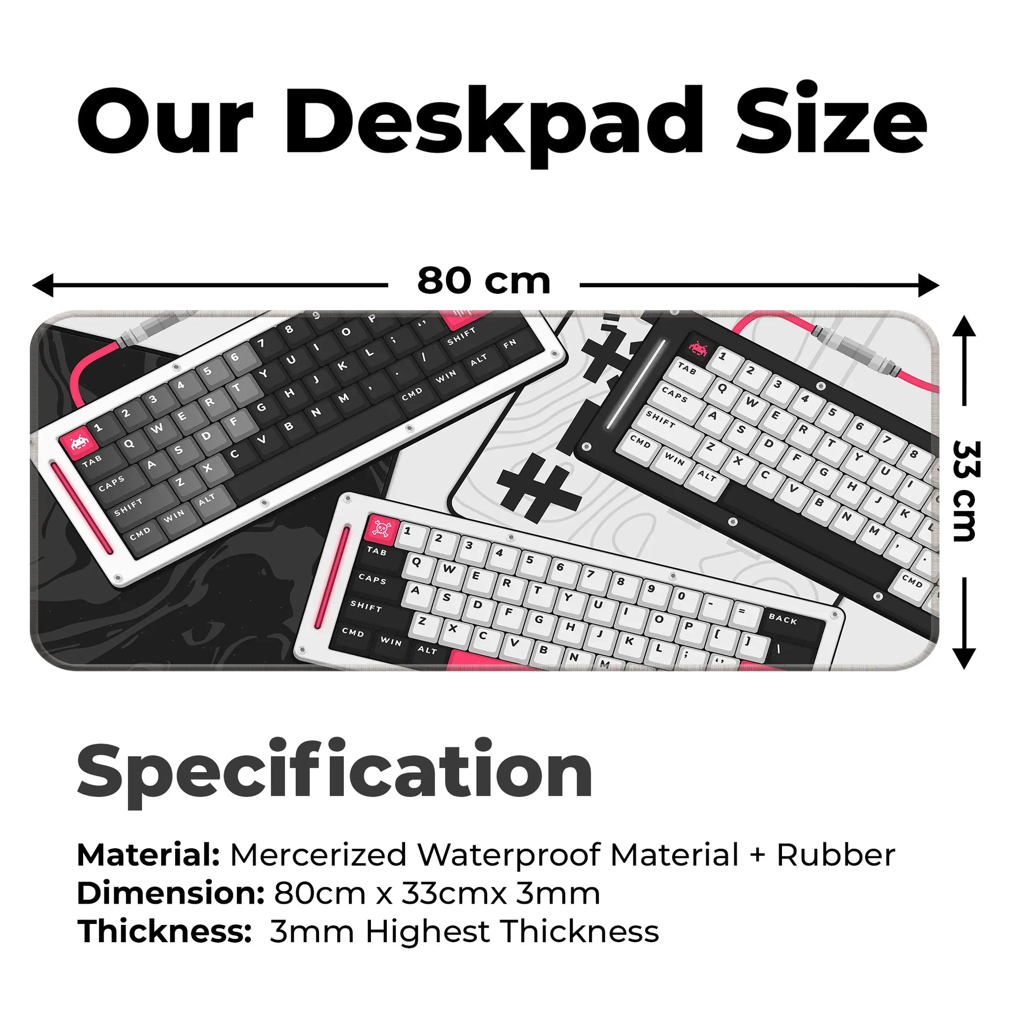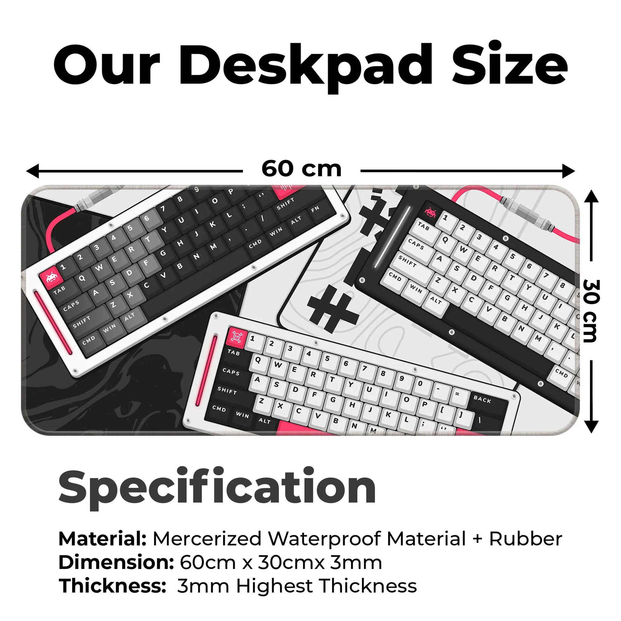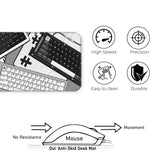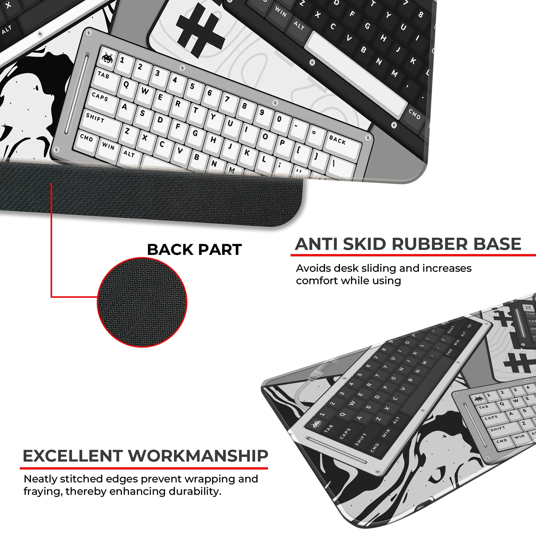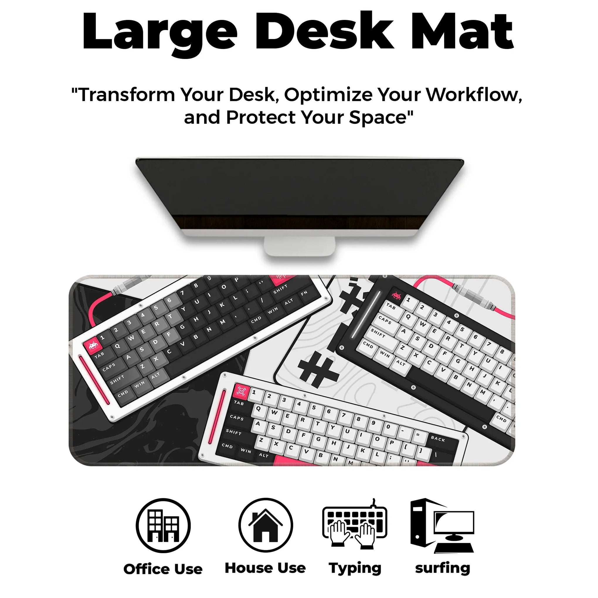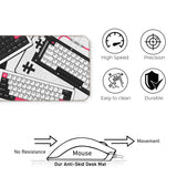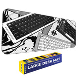 Elevate your setup with this stylish black & white desk mat featuring mechanical keyboards and pixel-art details. A perfect fusion of gaming nostalgia and modern design.
