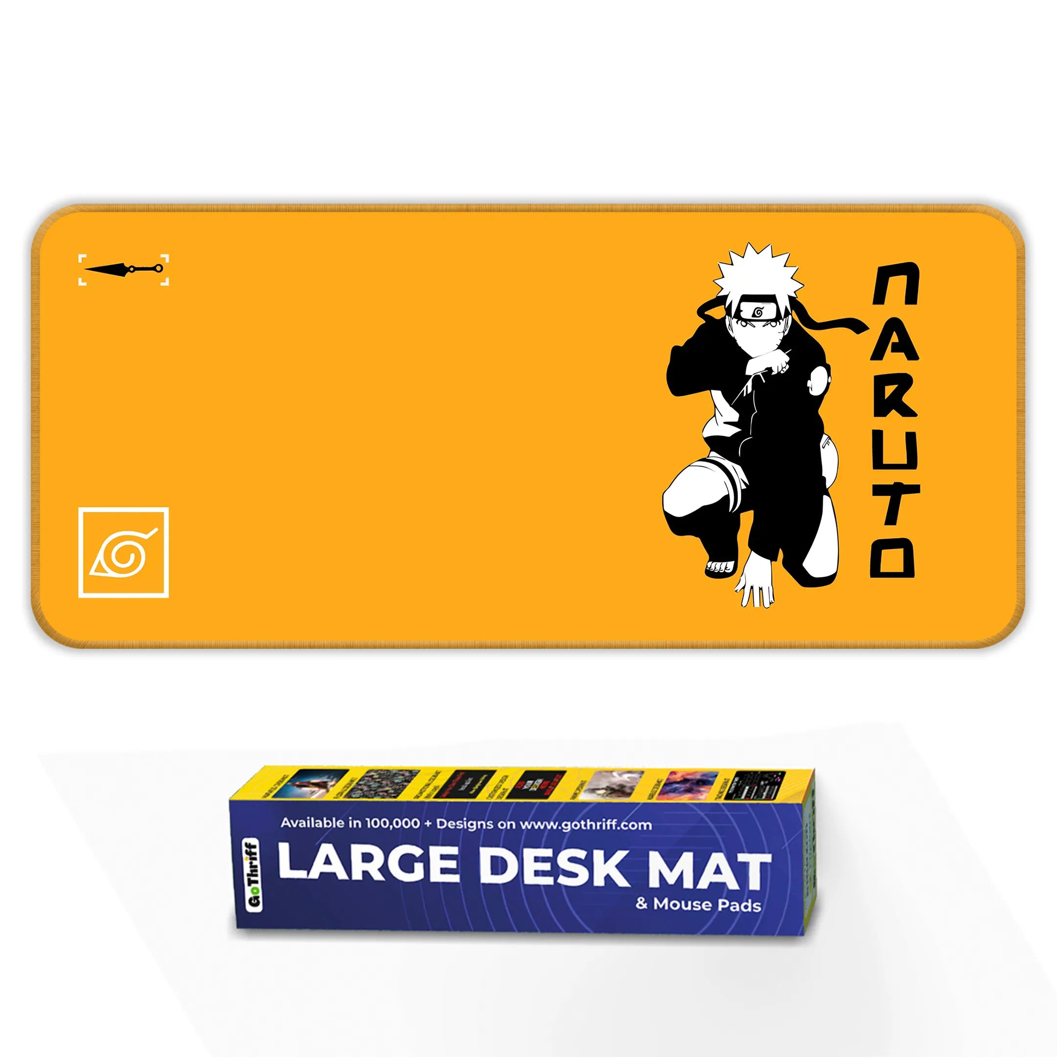 Bring ninja energy to your desk with this clean Naruto desk mat. Featuring a striking orange backdrop, Konoha symbols, and Naruto in classic ninja pose.