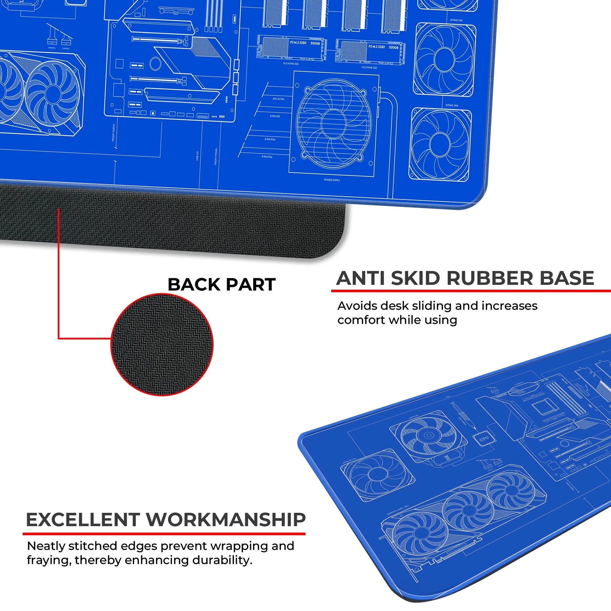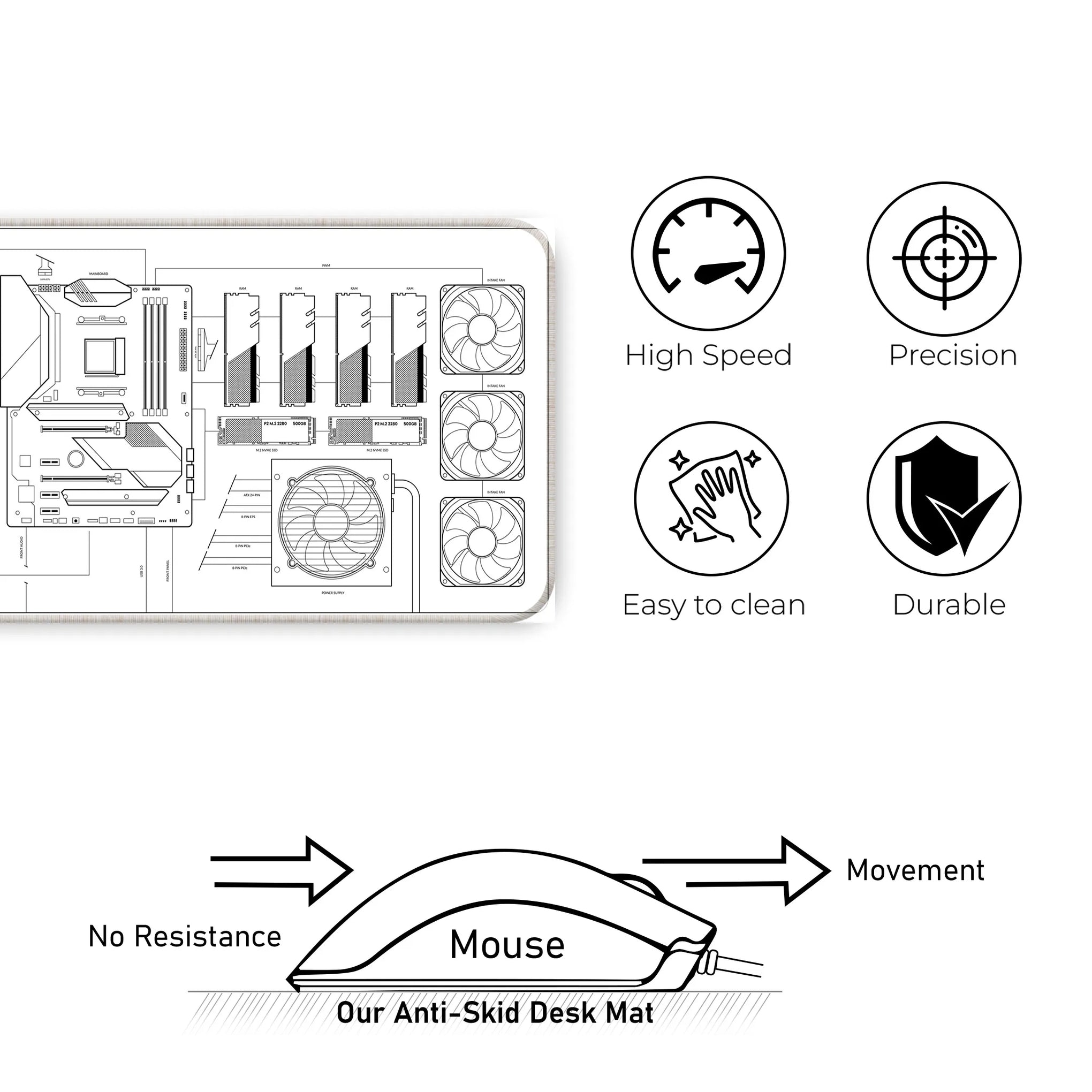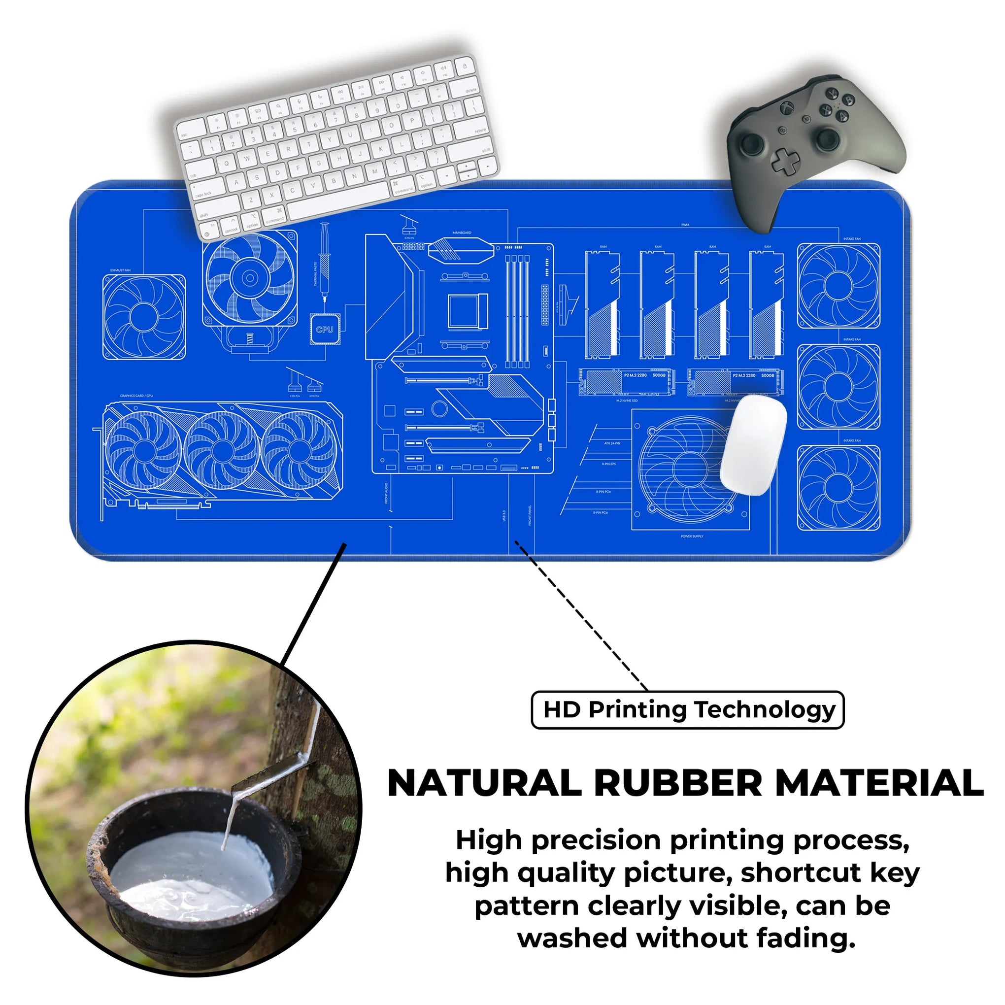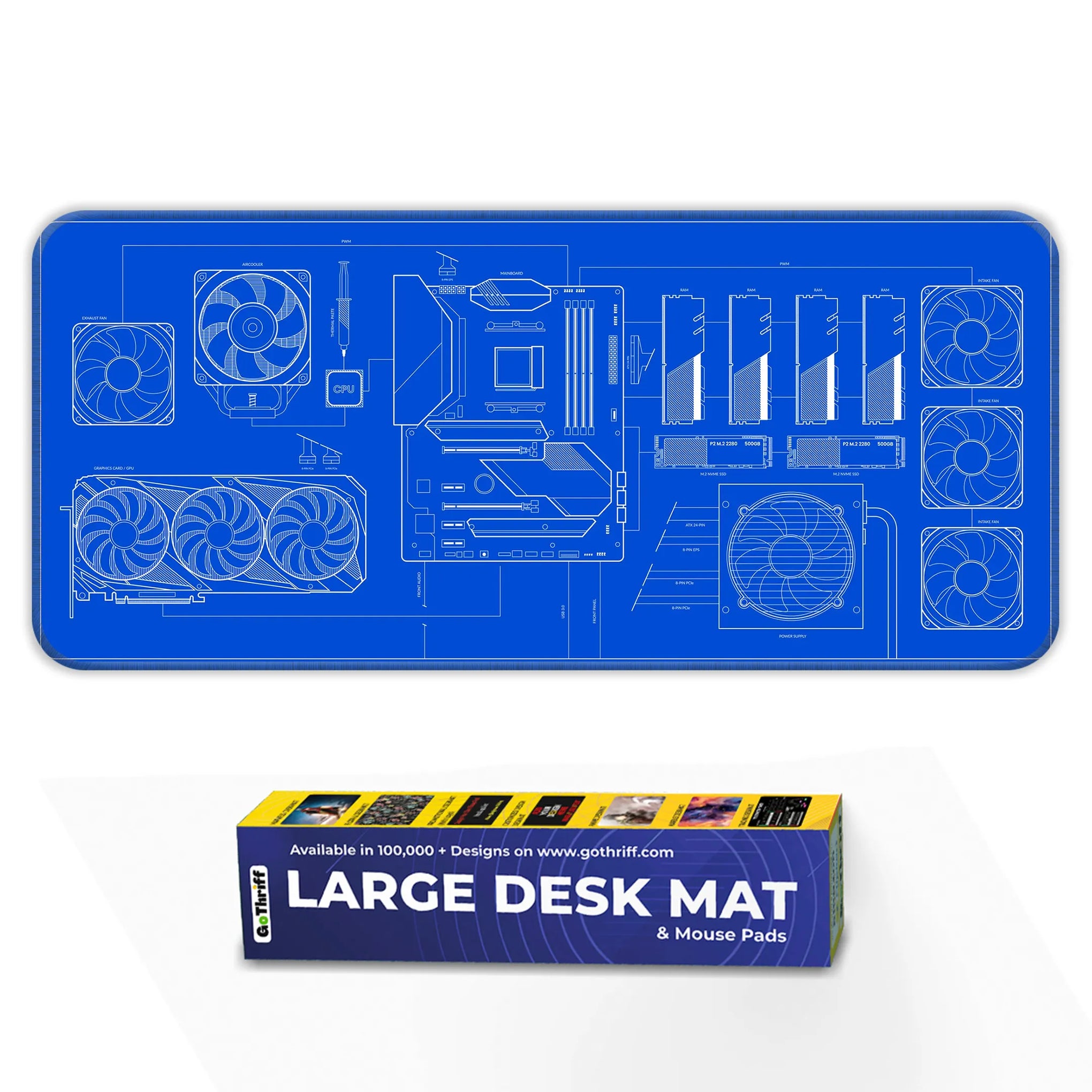PC Build Blueprint Technical Gaming Setup Deskmat