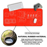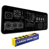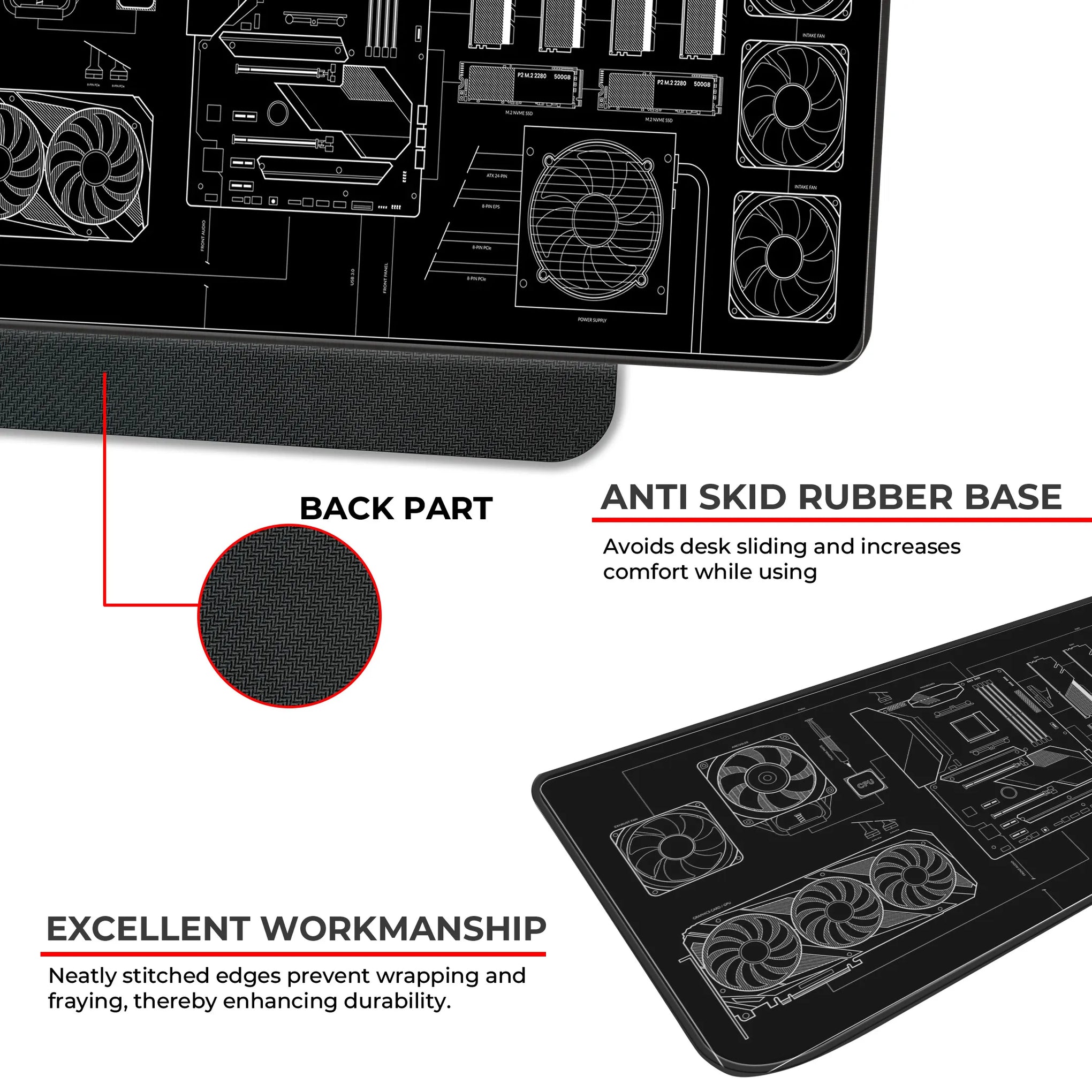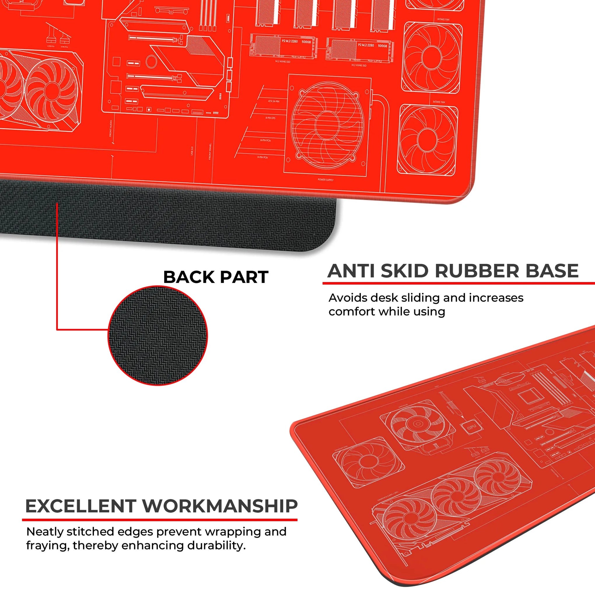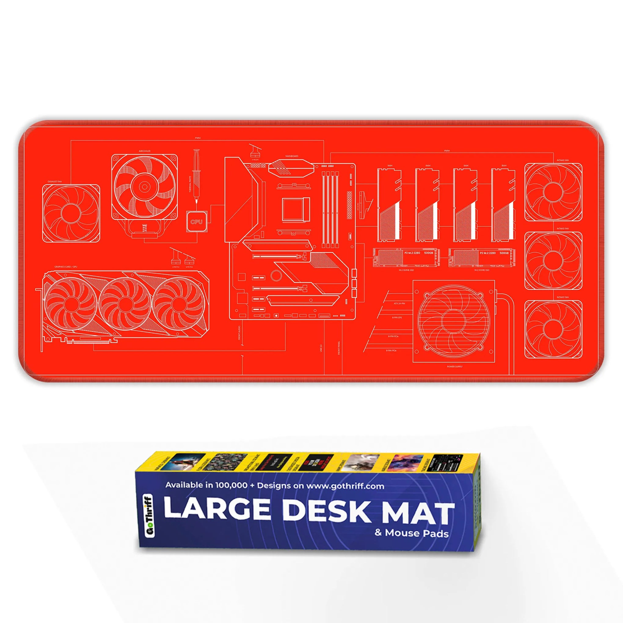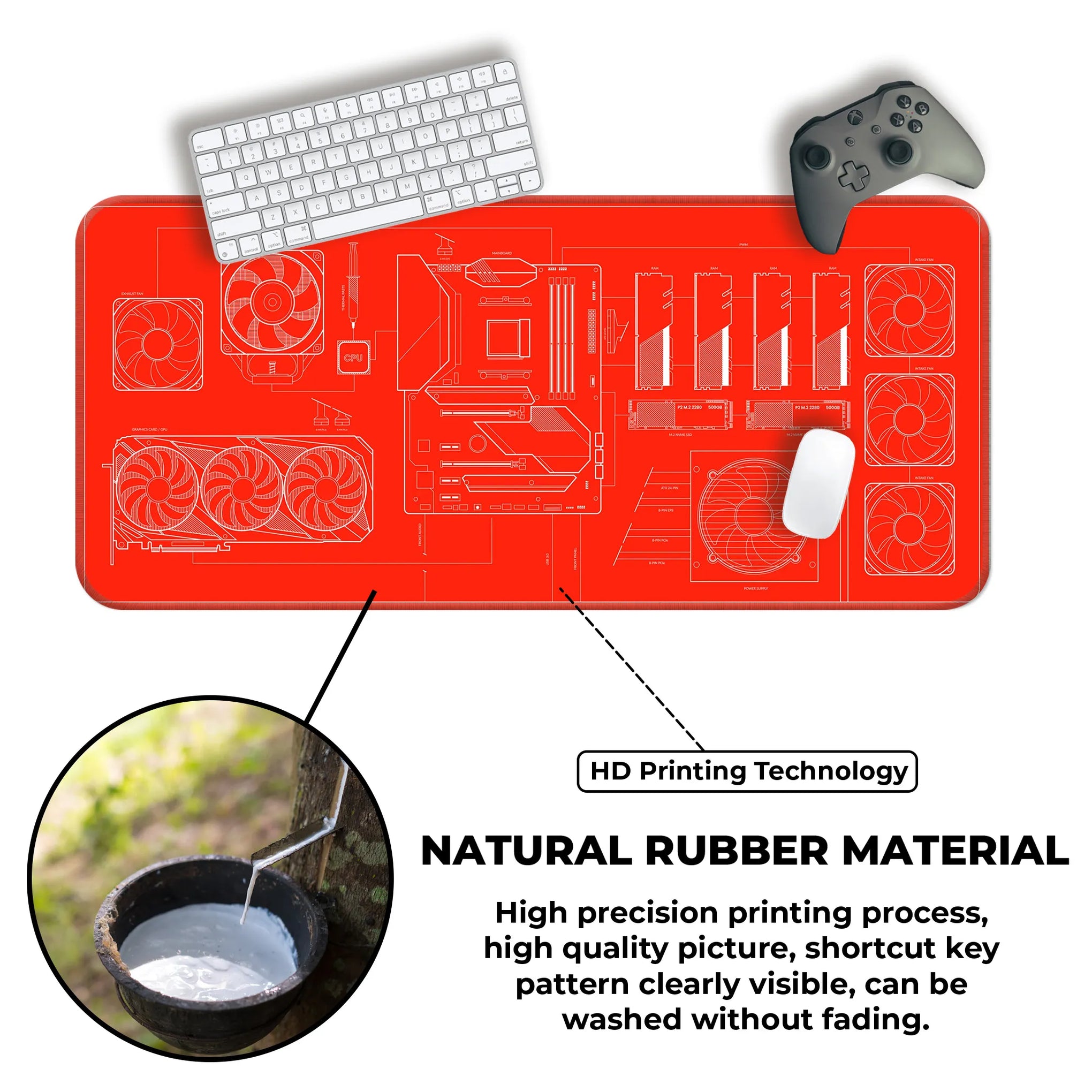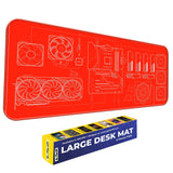 Perfect for tech geeks and custom rig lovers, this red schematic desk mat maps out every component—CPU, GPU, RAM, fans, and more—for a clean, engineered aesthetic.