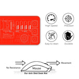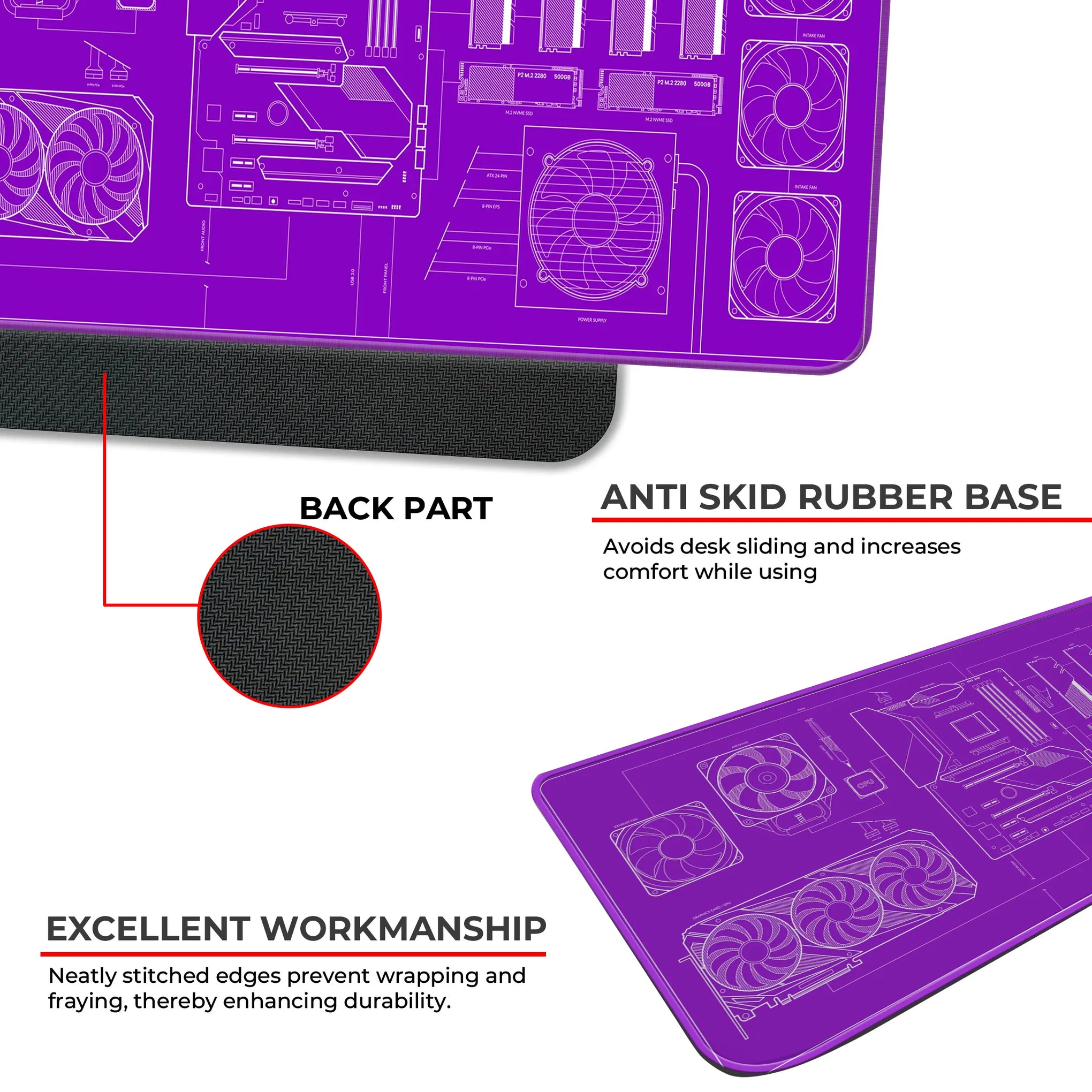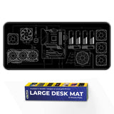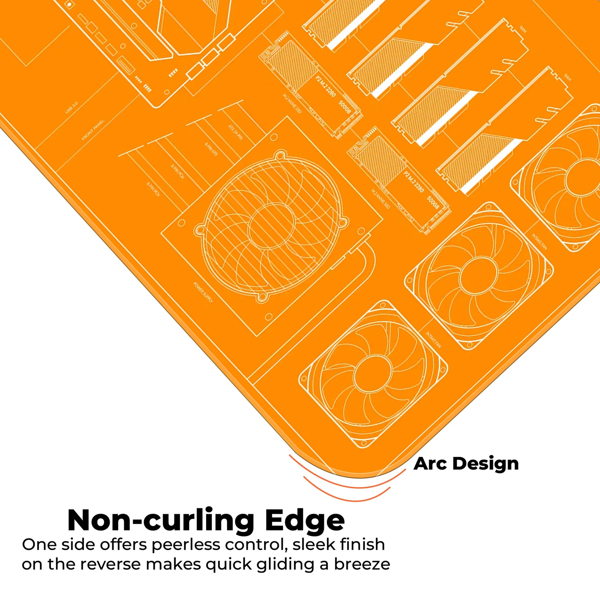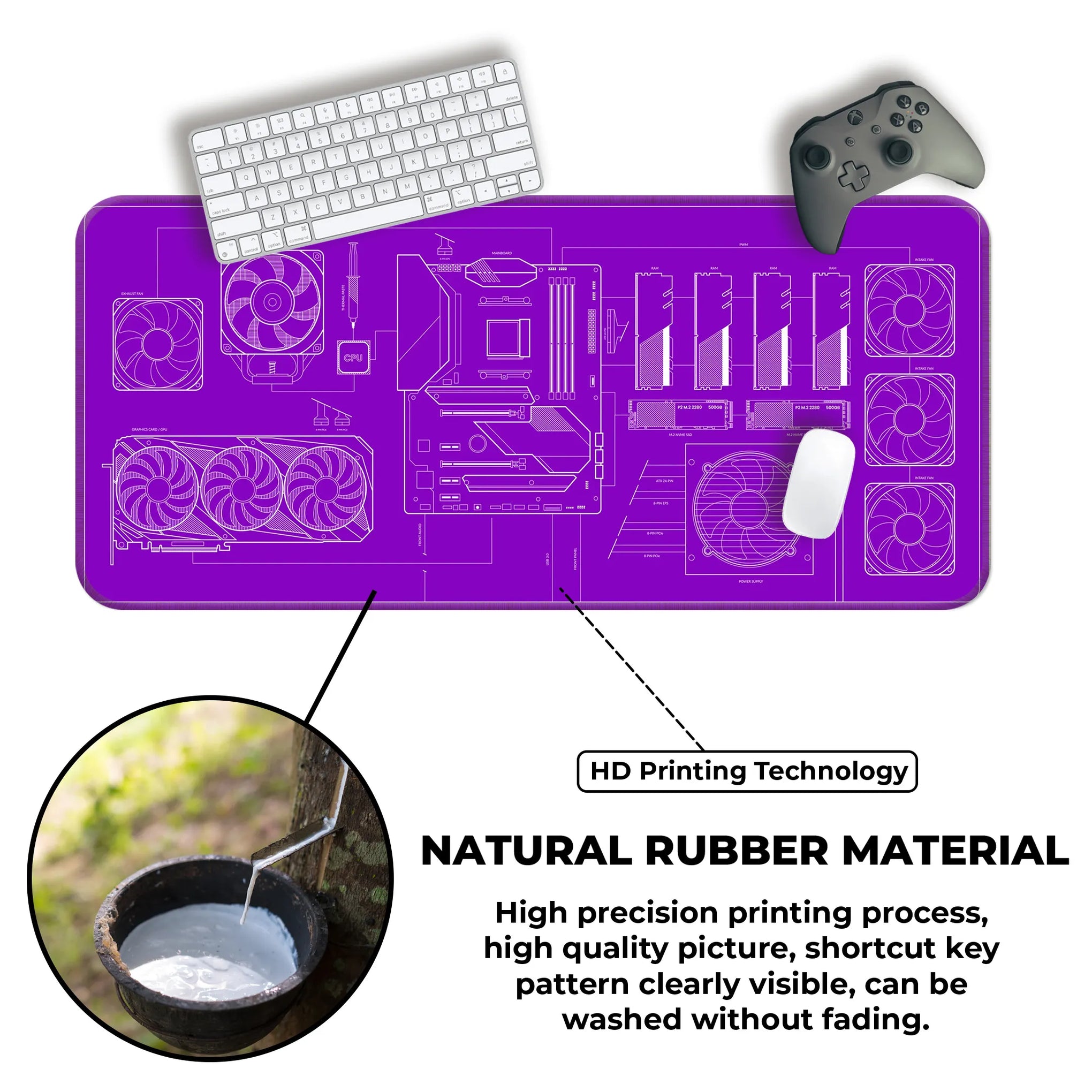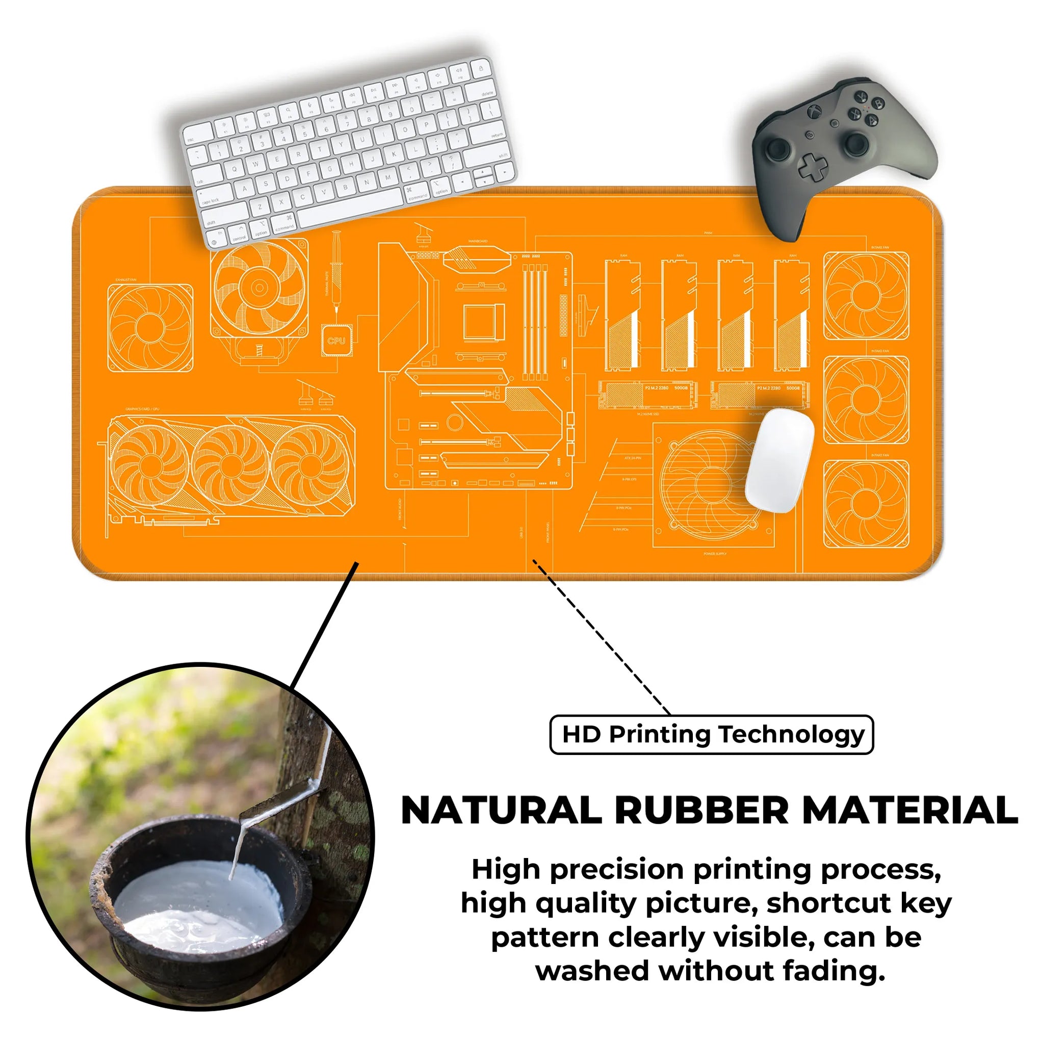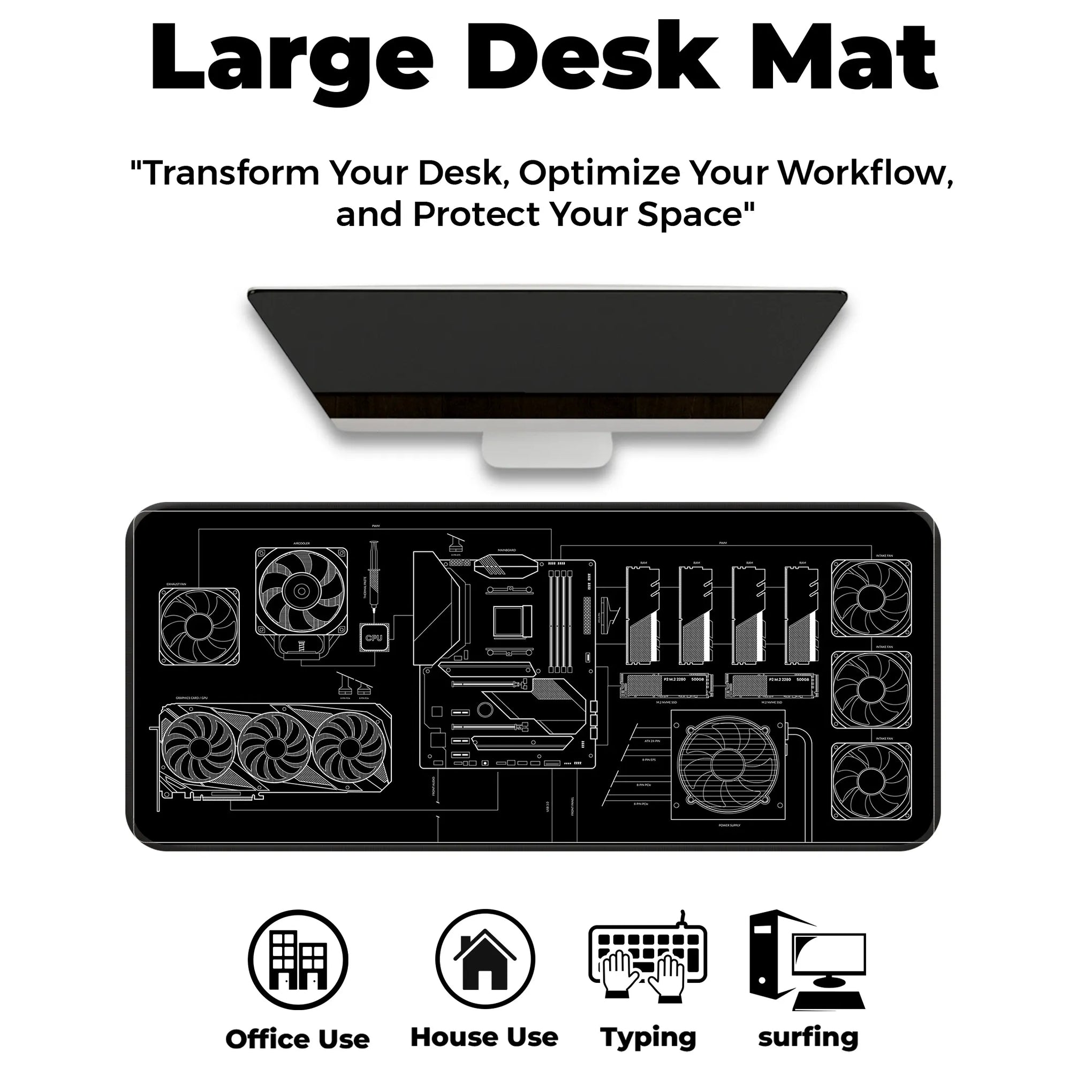 Perfect for tech geeks and custom rig lovers, this red schematic desk mat maps out every component—CPU, GPU, RAM, fans, and more—for a clean, engineered aesthetic.
