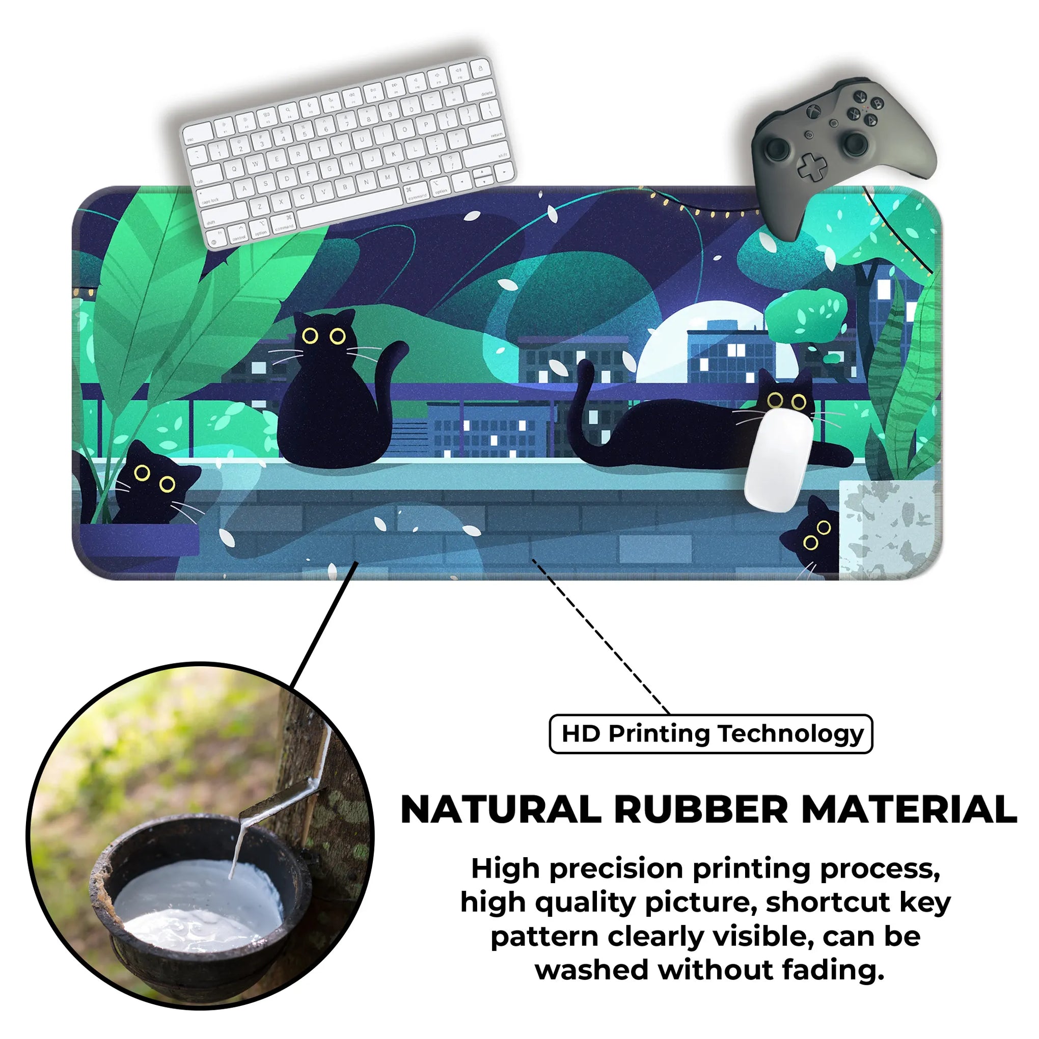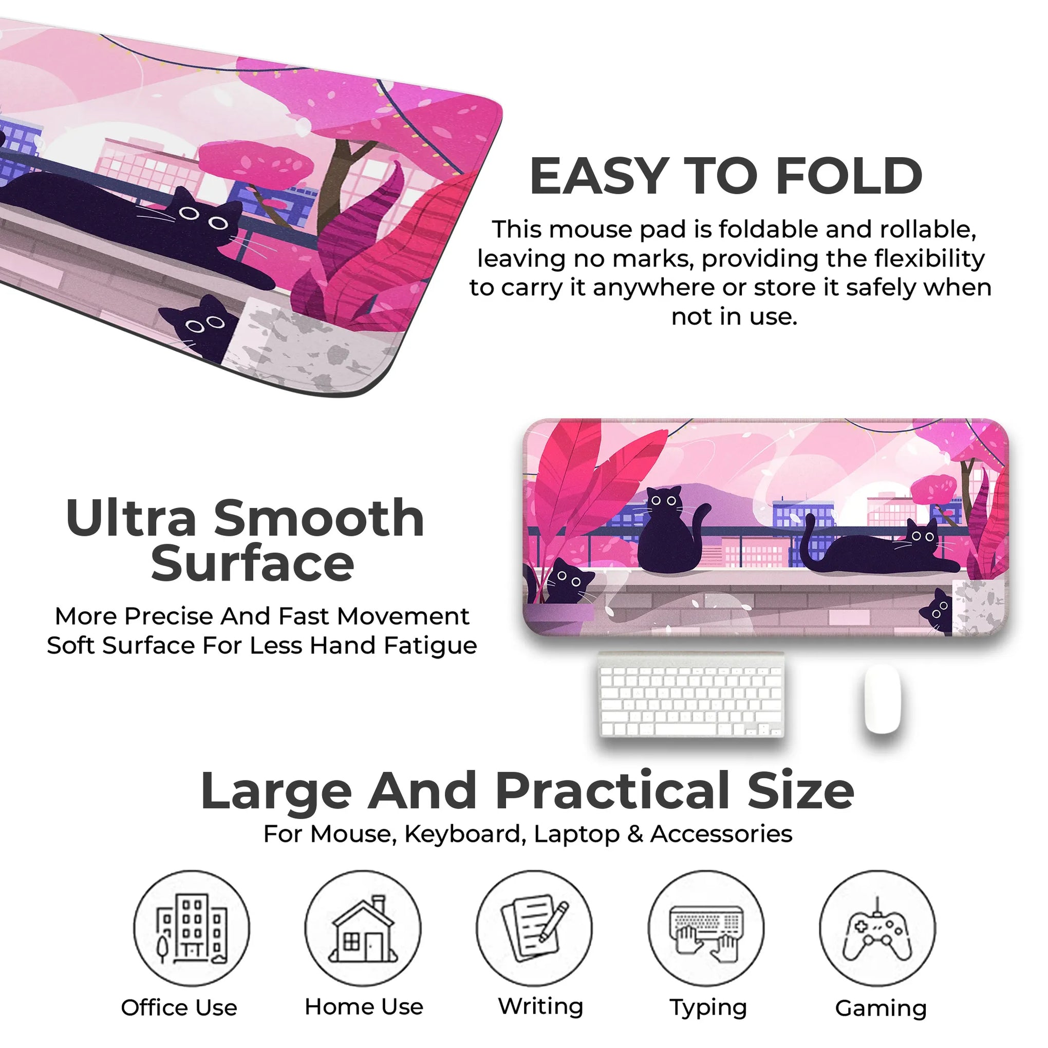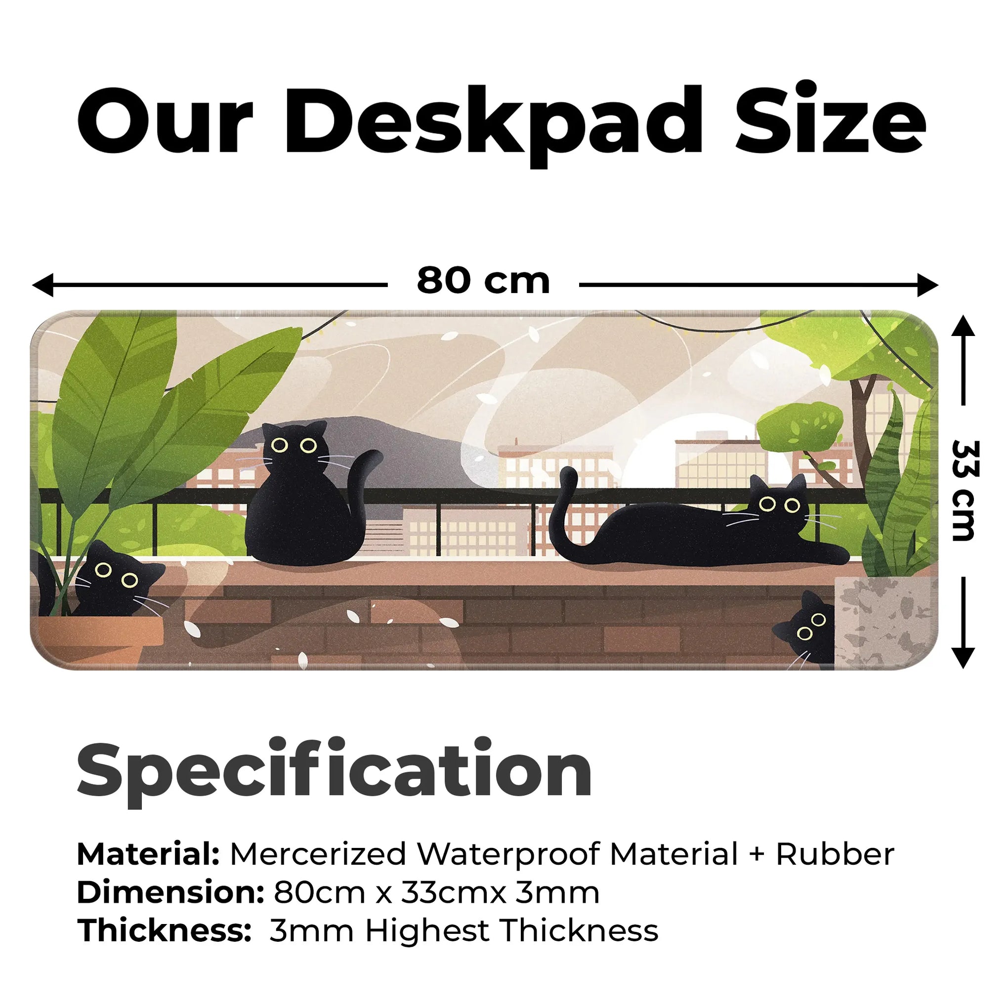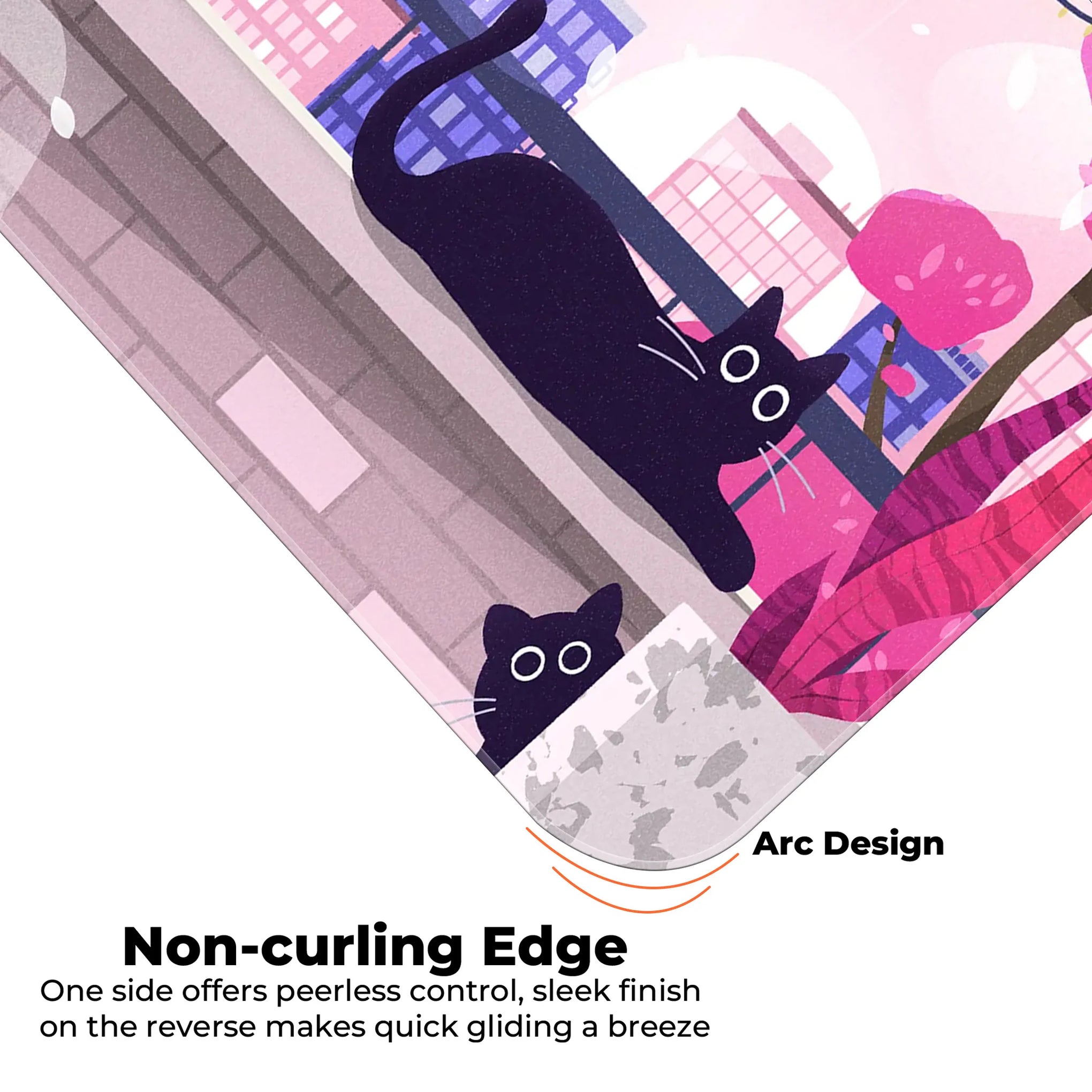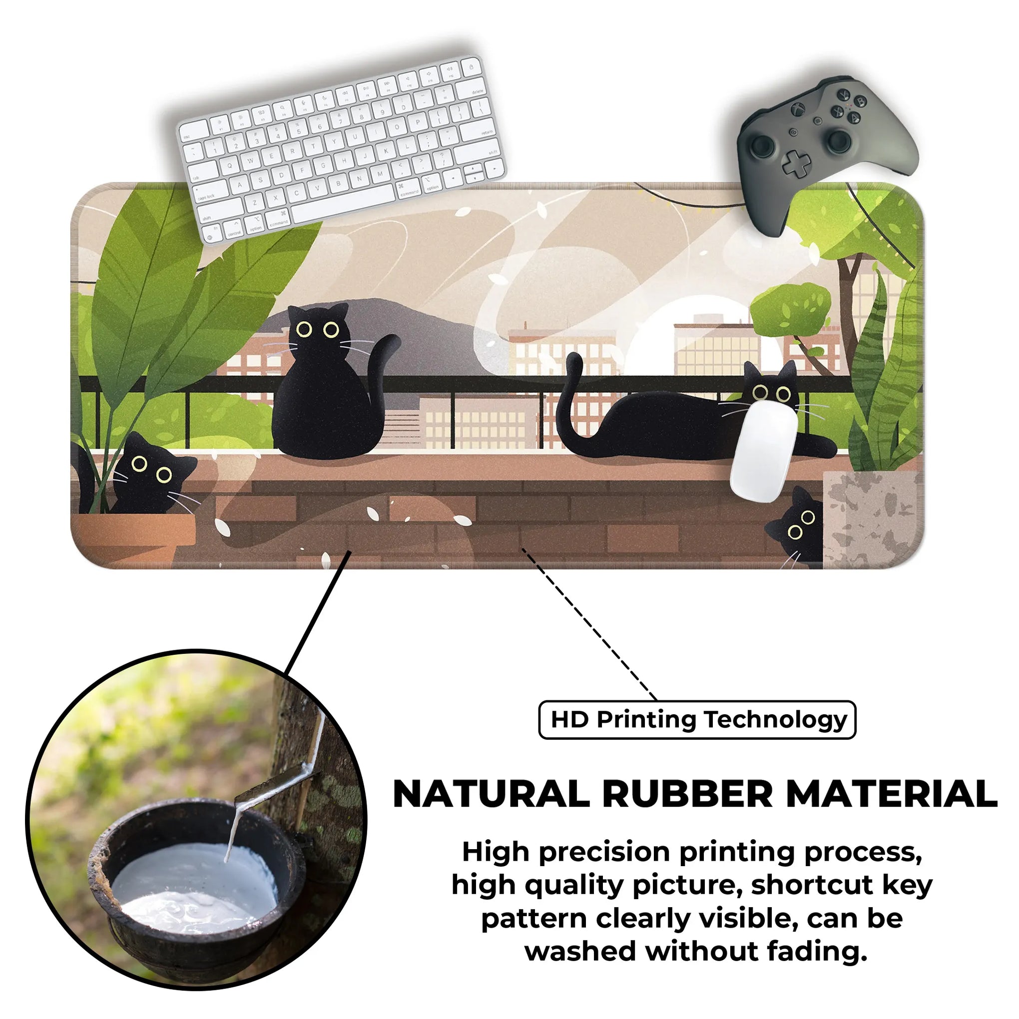 Add charm to your desk with this playful cat desk mat. Featuring quirky black cats on a dreamy pink city balcony, it’s purr-fect for cozy and creative vibes.