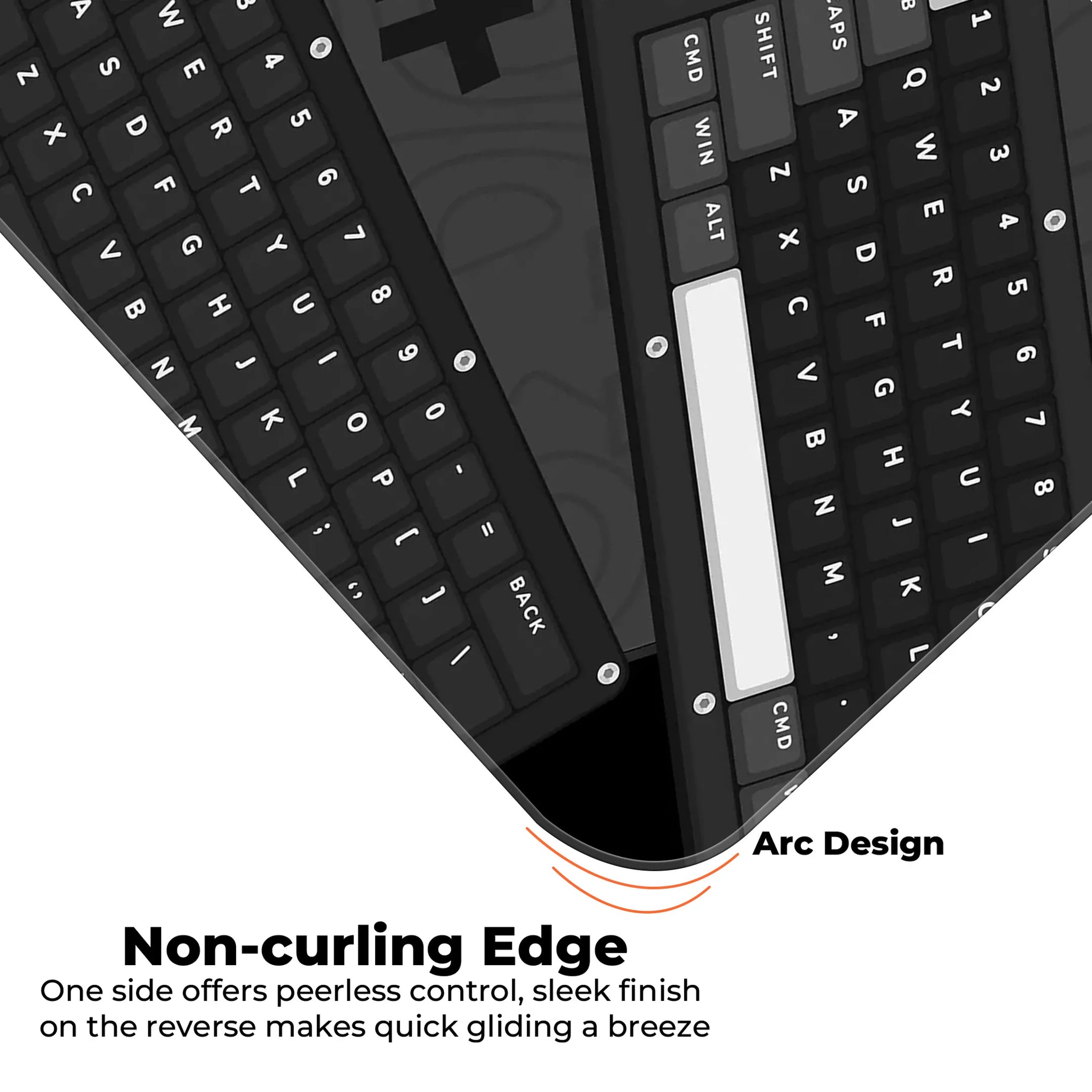 Tap into your inner coder with the Retro Hacker Vibes Desk Mat, featuring a dynamic layout of mechanical keyboards layered over deep blacks and subtle hash (#) symbols. With its matte grayscale color scheme, minimal tech icons like the pixelated skull and space invader add a vintage charm that’s equal parts coder, gamer, and designer.