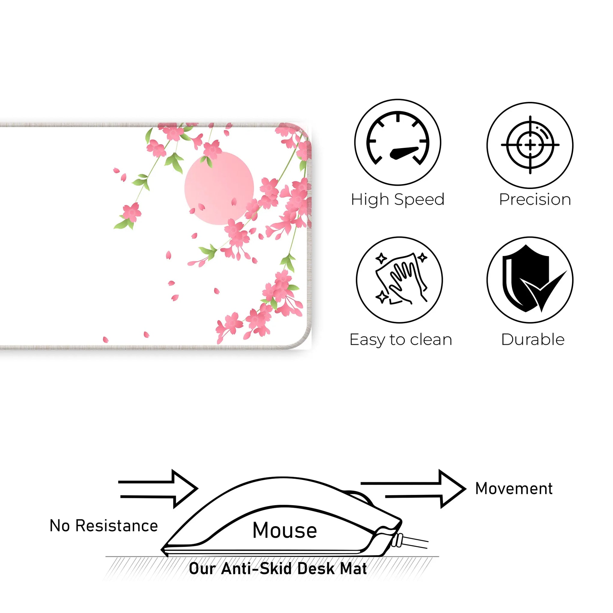 Step into spring every time you sit at your desk with the Sakura Bloom Desk Mat. Featuring delicate cherry blossom petals cascading gently over a blush-pink background, this design captures the fleeting beauty of Hanami season in Japan. The minimal aesthetic soothes the eye while brightening up your workspace, whether you're gaming, studying, or journaling.