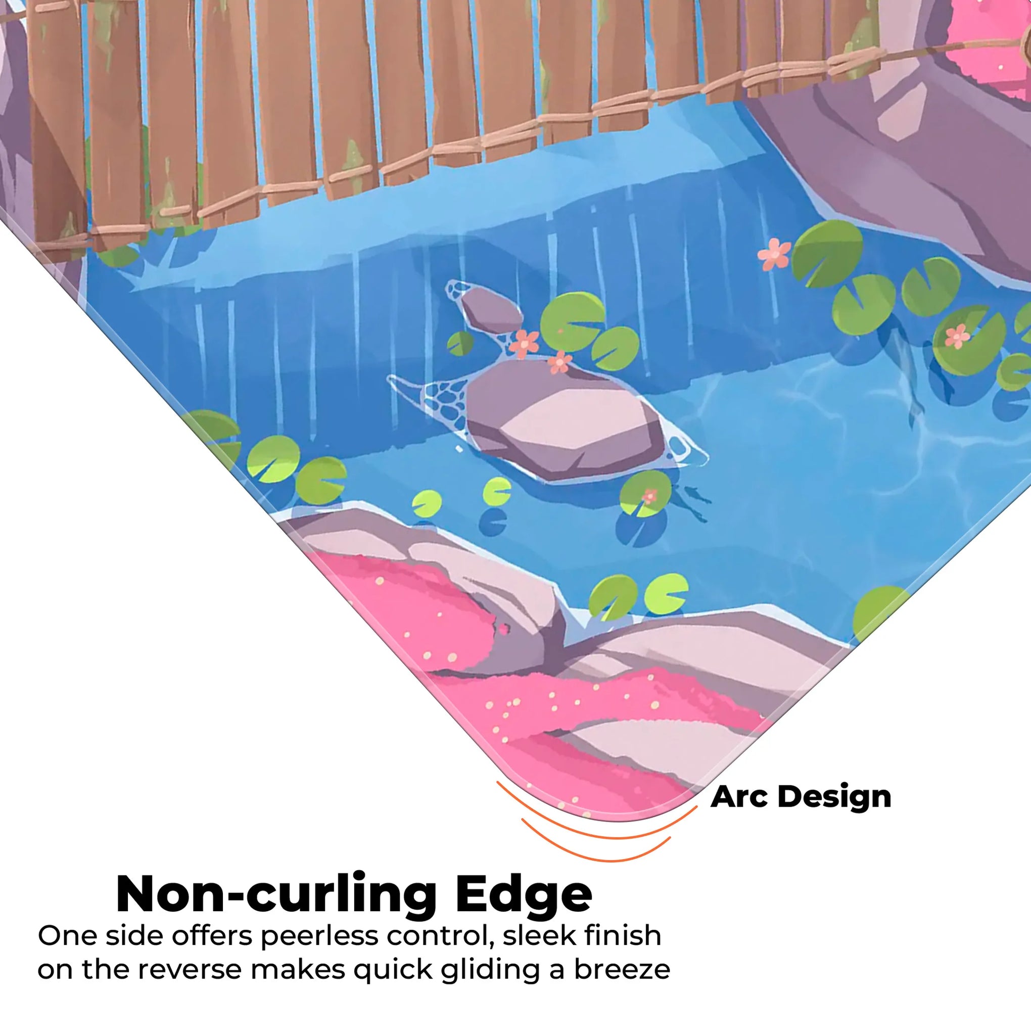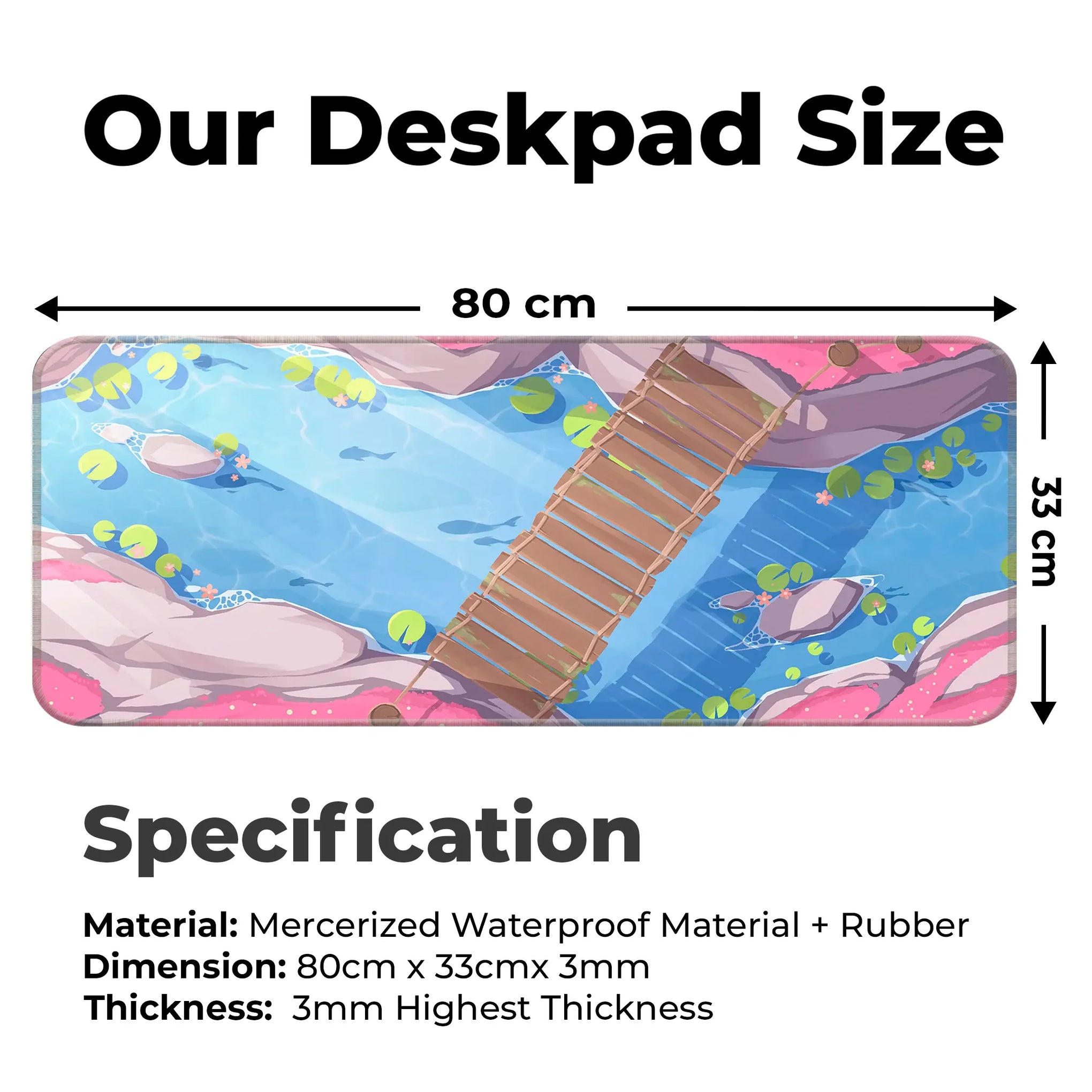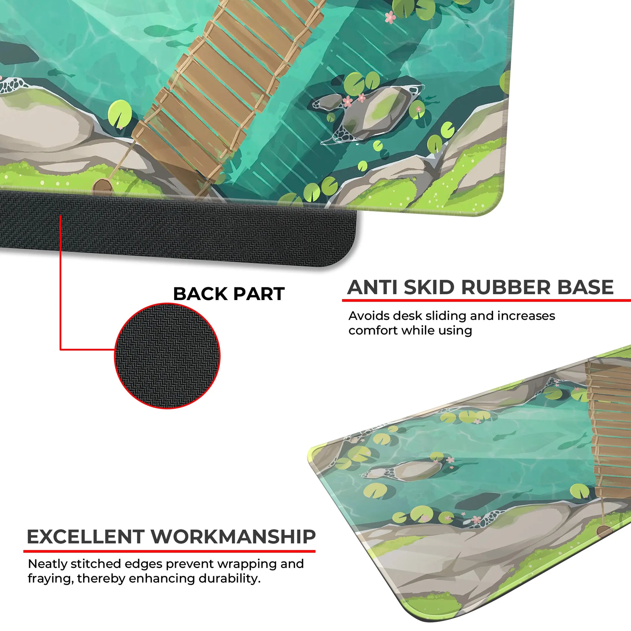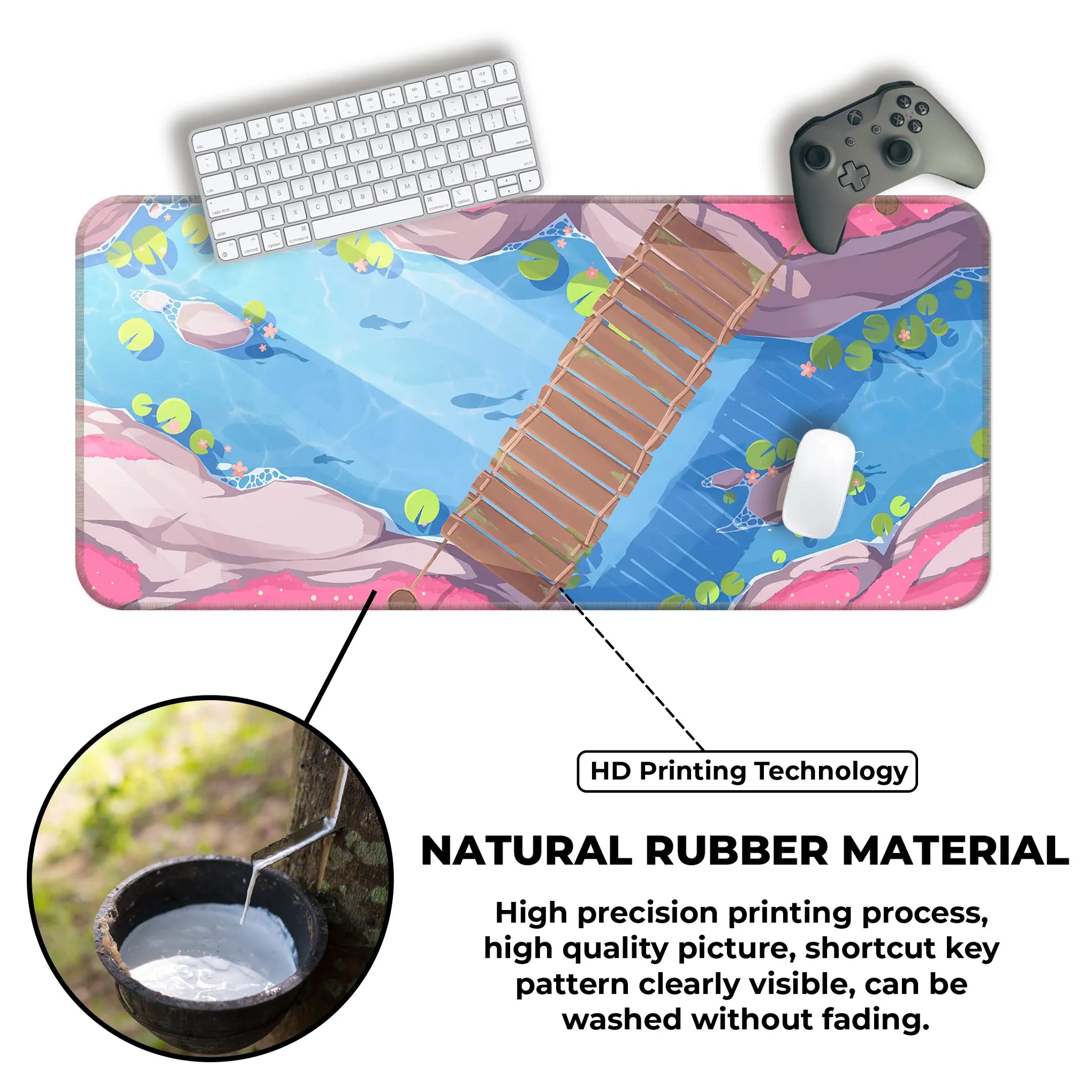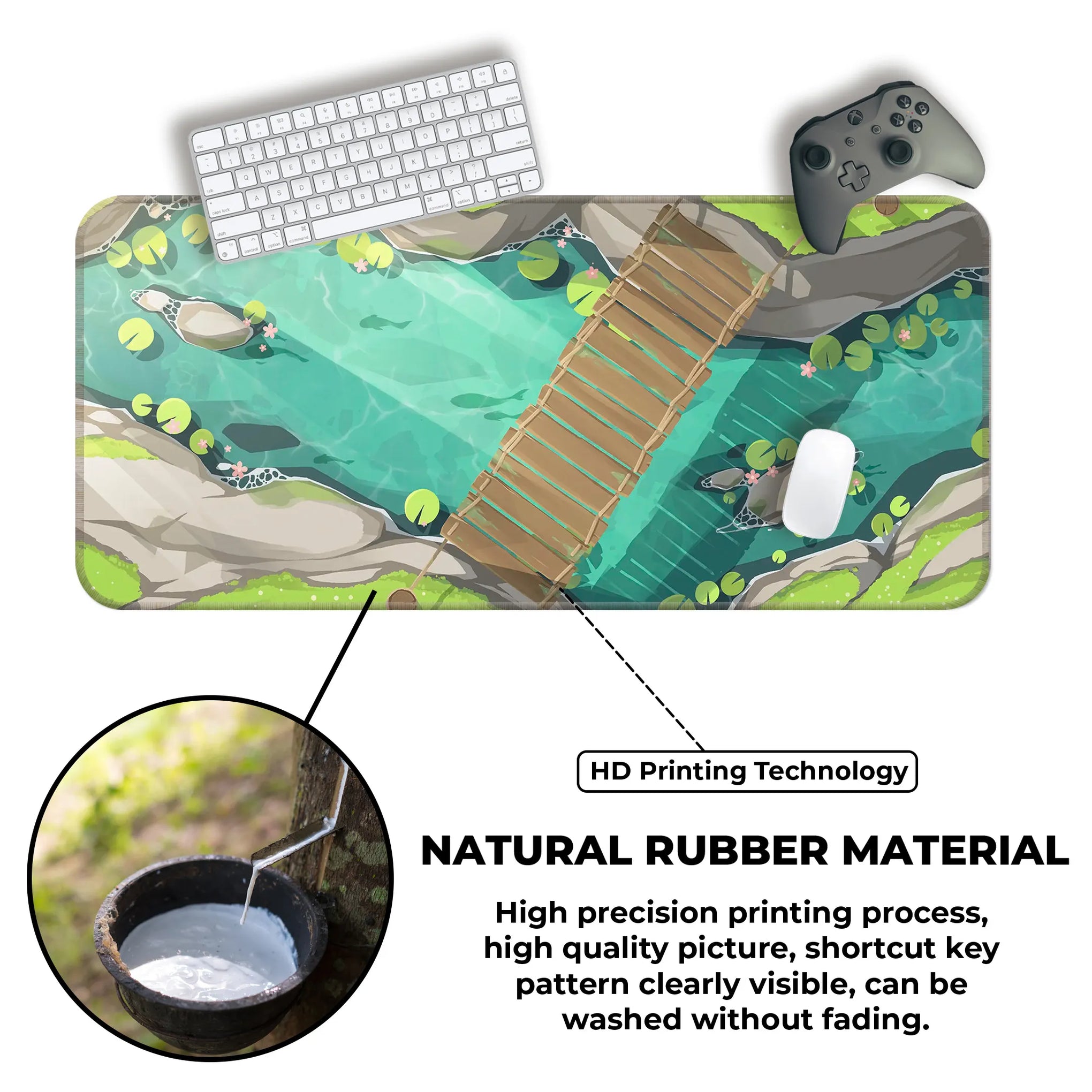 Every time you sit down to work or play, this mat transports you to a quiet, forested stream, where the only sound is the water trickling beneath the bridge and the soft rustling of lily pads. Ideal for zen desk setups, mindful journaling, cozy gaming stations, or anyone seeking a calming Japanese aesthetic.